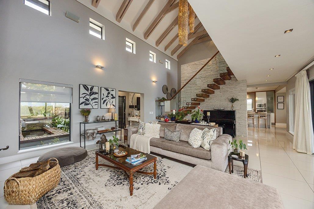 Experience luxury with five elegantly furnished bedrooms, including separate domestic quarters, all designed for optimal living. The home offers excellent flow throughout its spacious interiors.