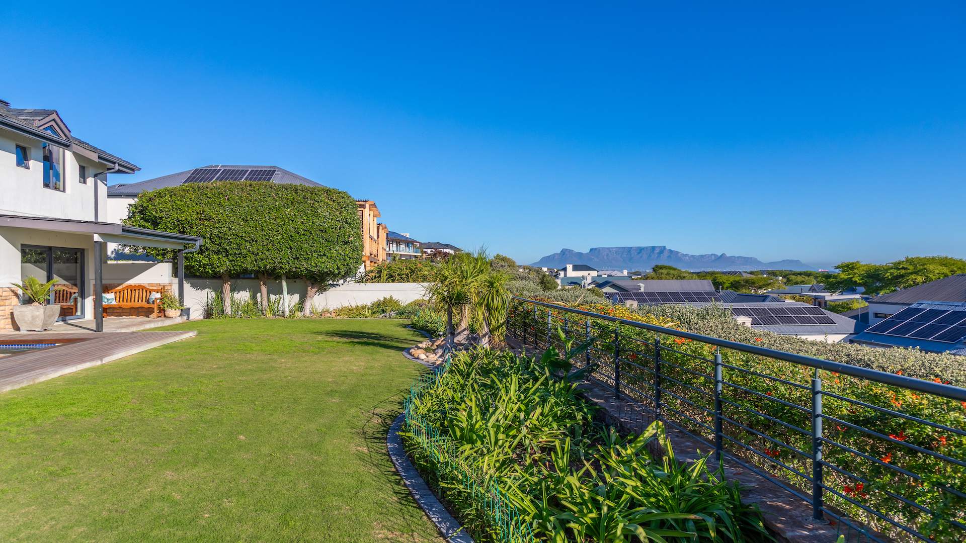 - Automated irrigation system supported by a borehole for lush landscaping.