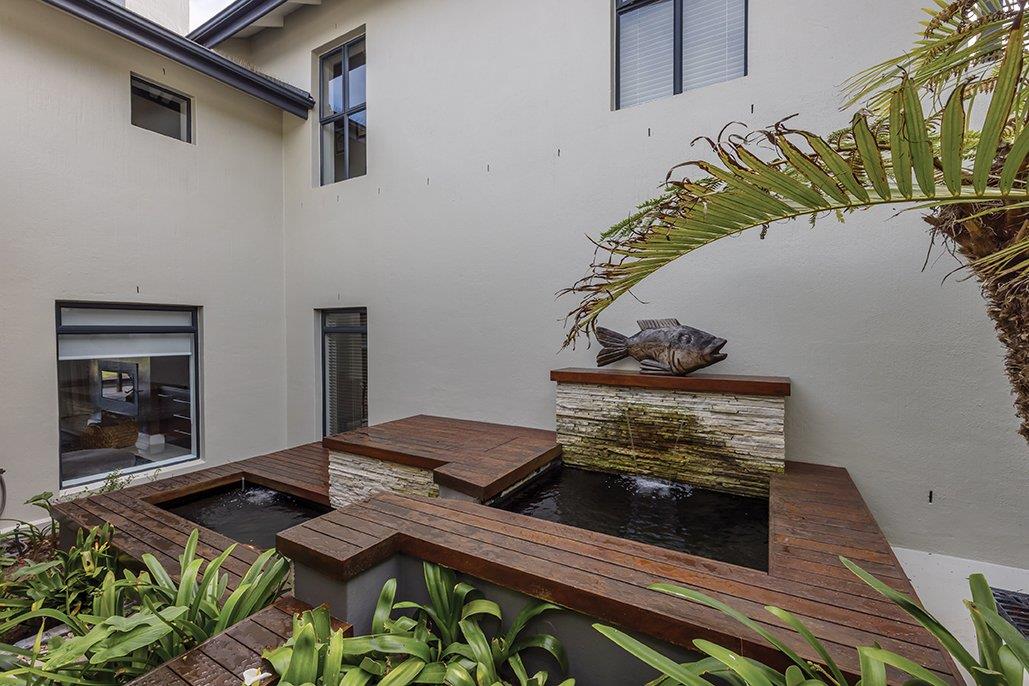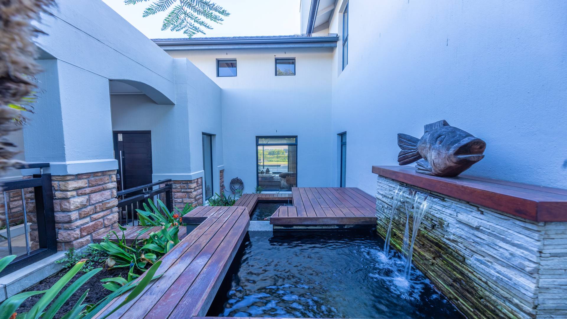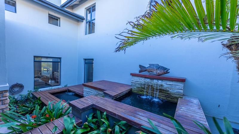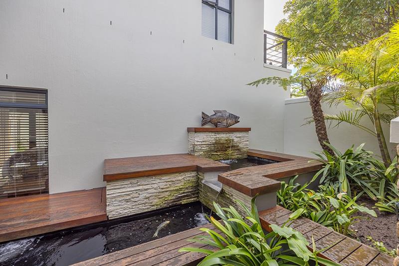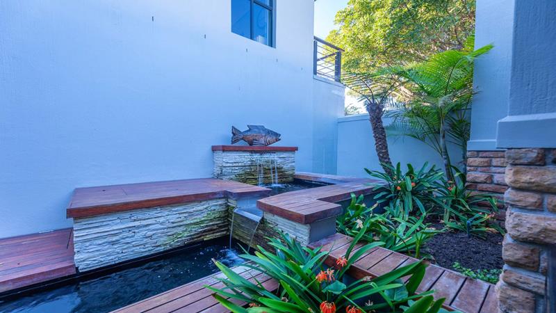 - A beautiful koi pond with a fountain feature.