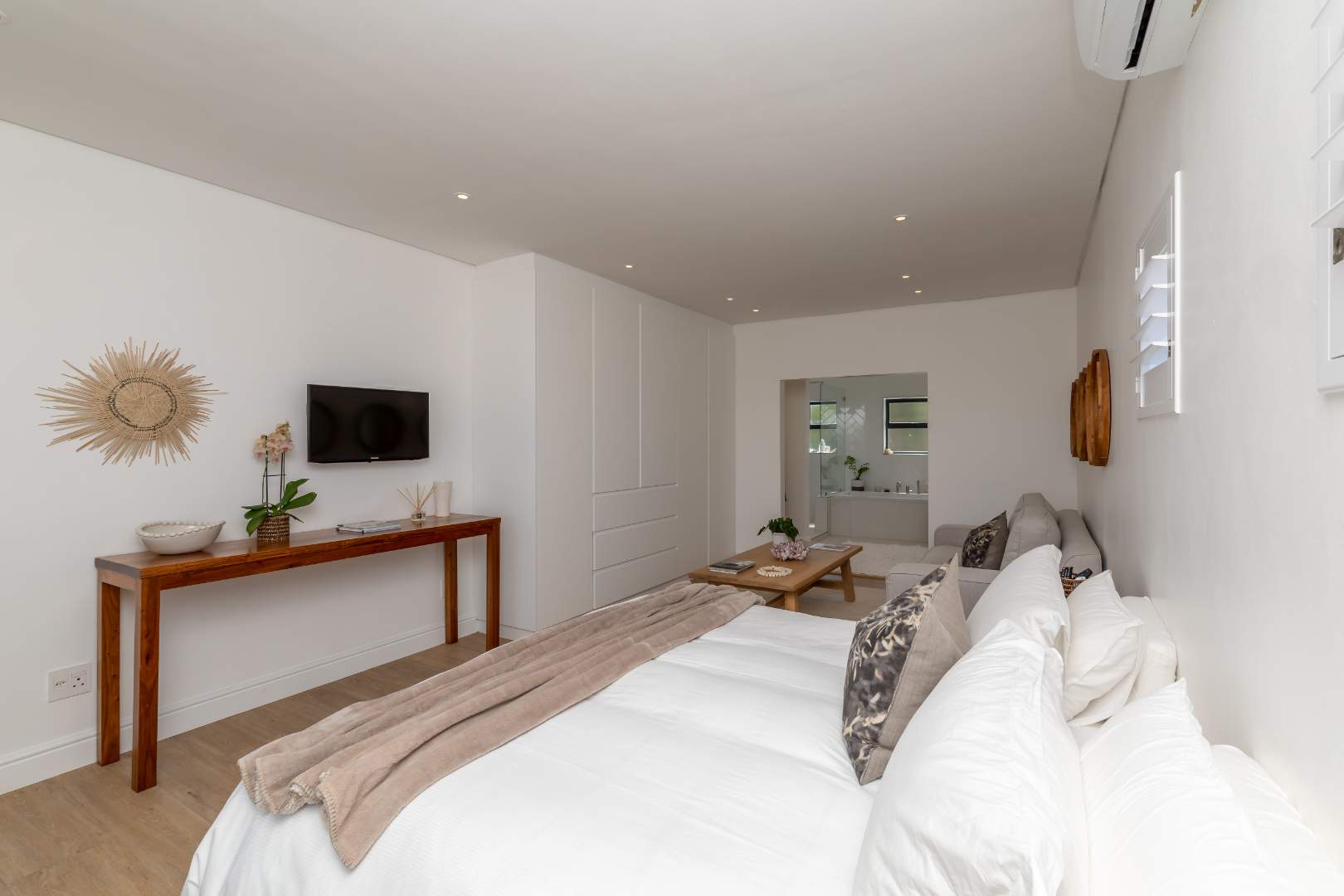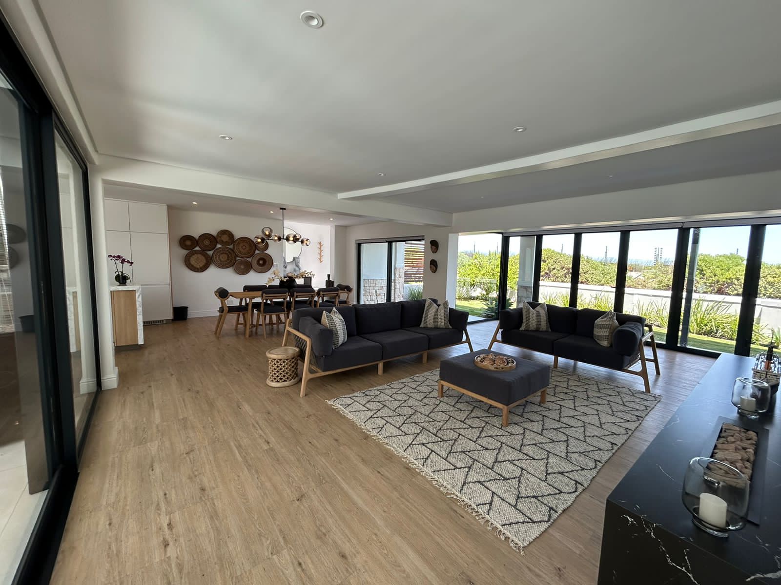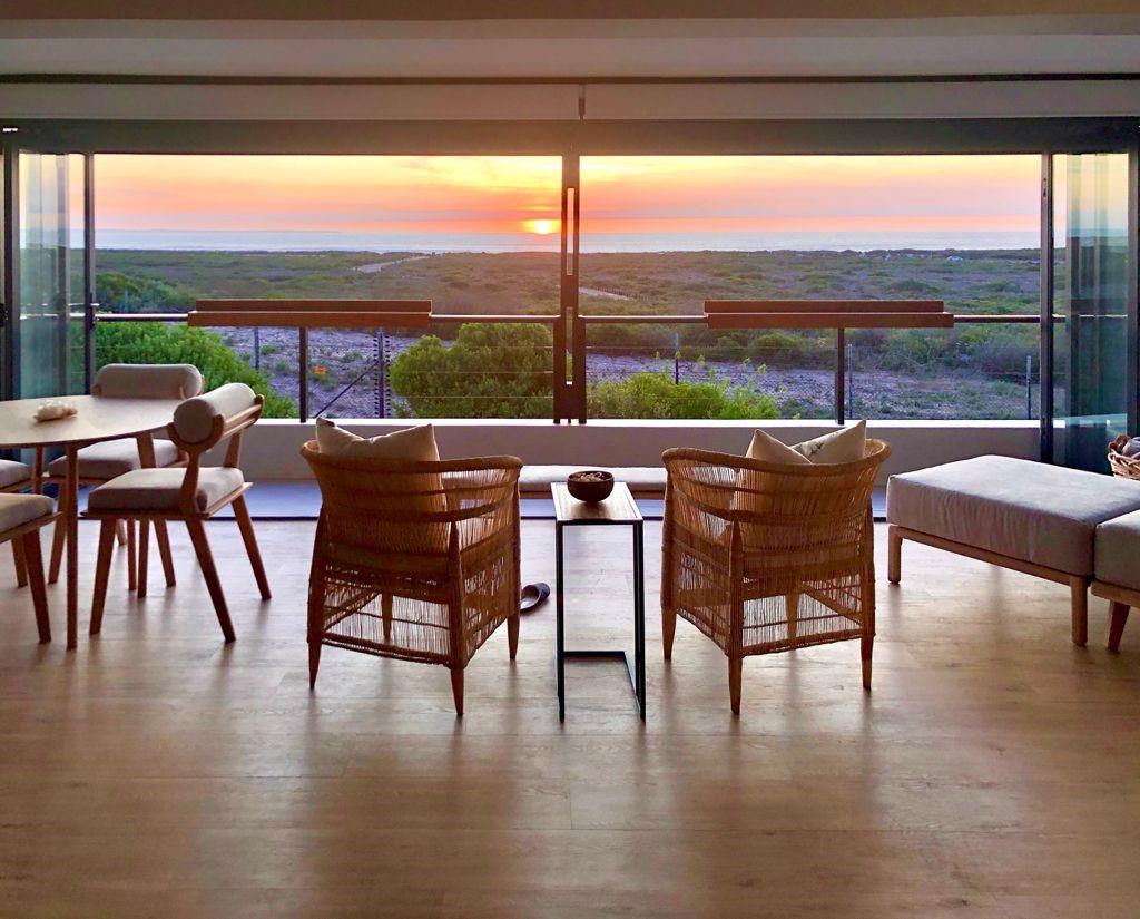 Situated in the prestigious Atlantic Beach Estate in Melkbosstrand, this modern, fully furnished residence offers state-of-the-art finishes, exceptional natural light, and breathtaking ocean and mountain views.