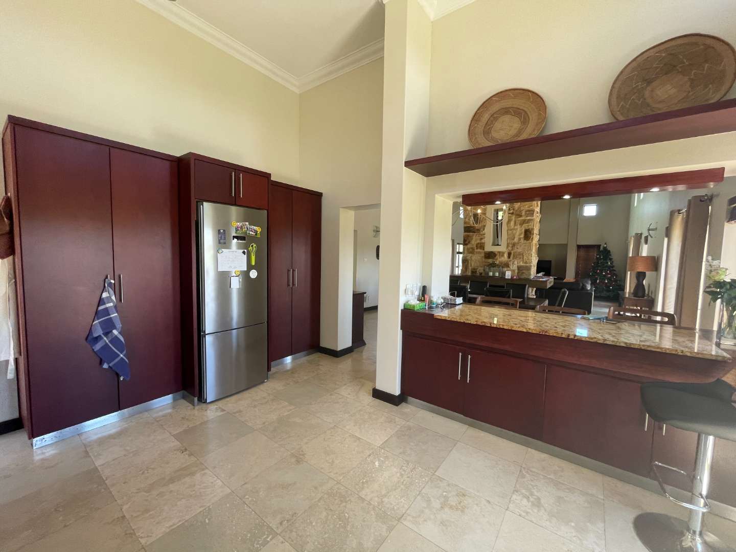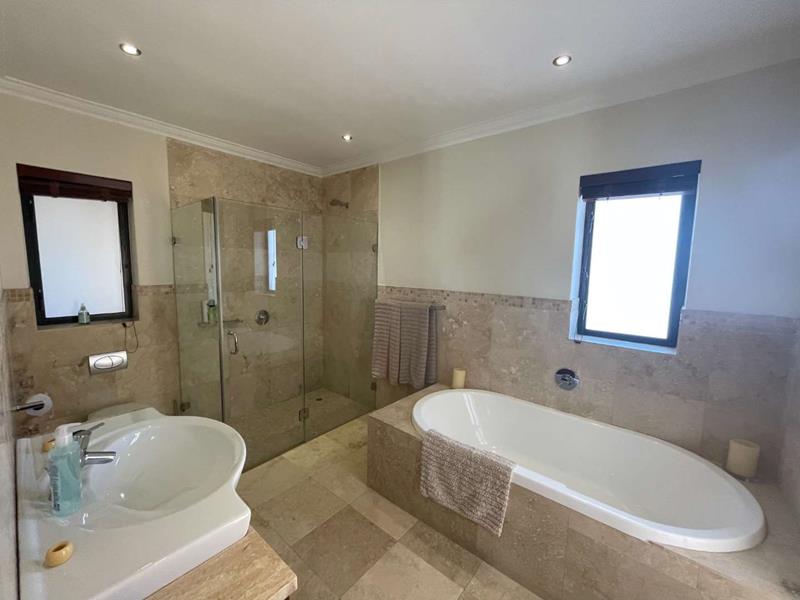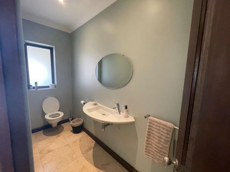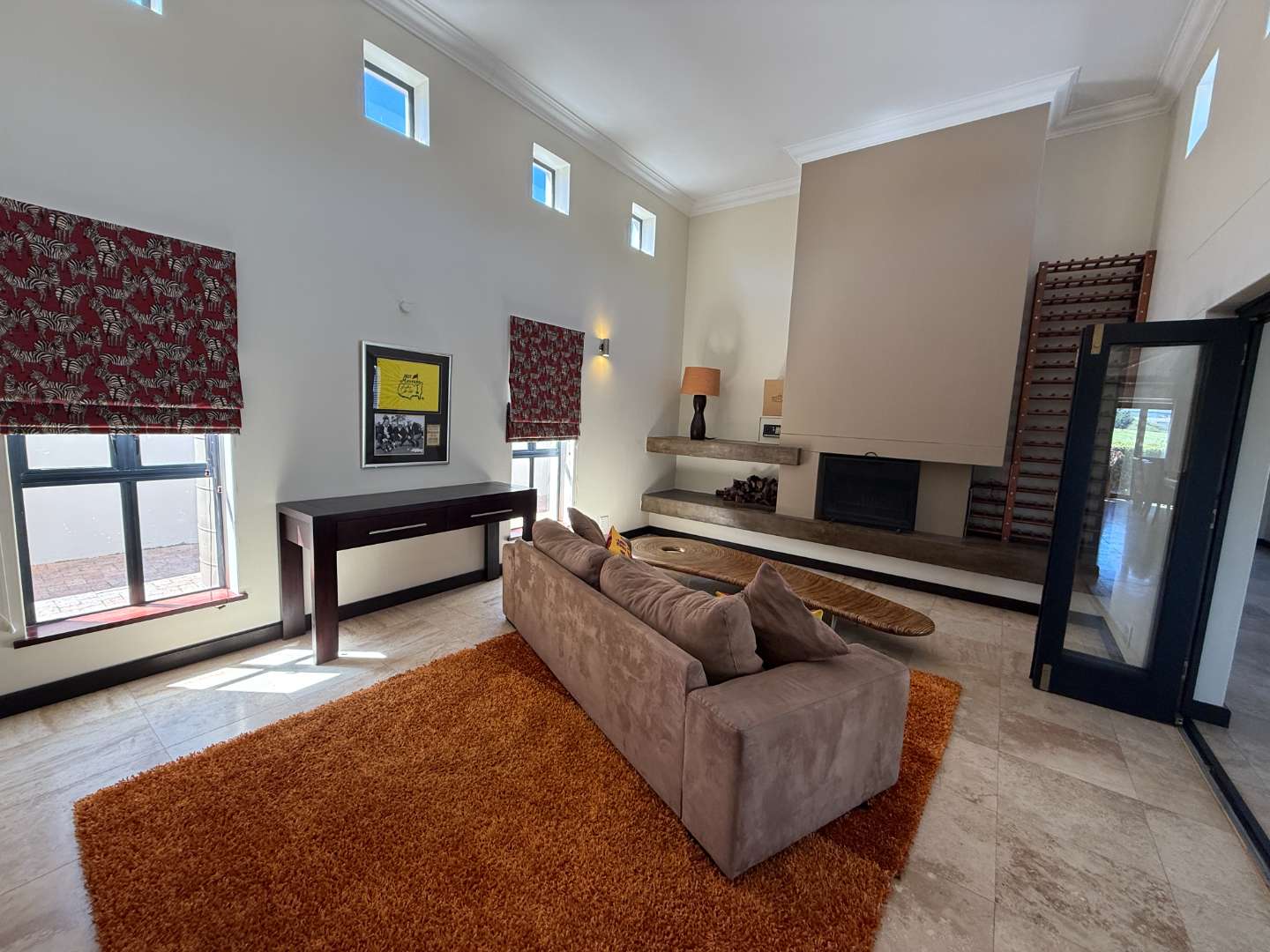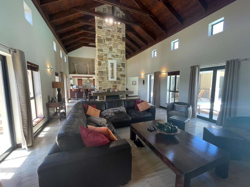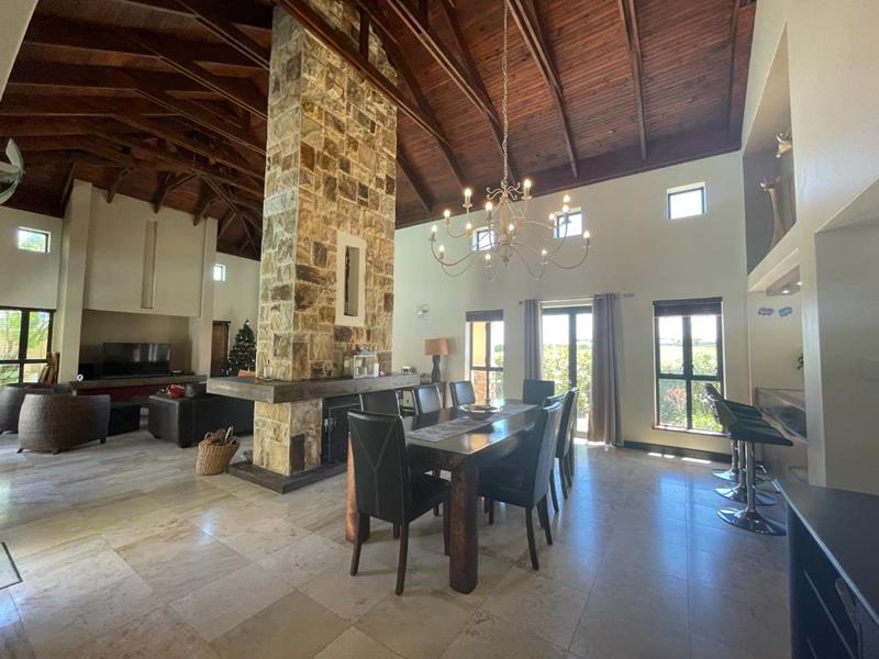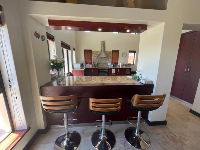 The interior of the home is equally impressive, with an open plan lounge, dining, and kitchen area that seamlessly blend elegance and functionality. A separate scullery provides added convenience, while a wood-burning fireplace in the living area offers warmth and charm during cooler months. From the lounge and dining area, enjoy breath-taking views of the fairway, adding a tranquil backdrop to your daily life.