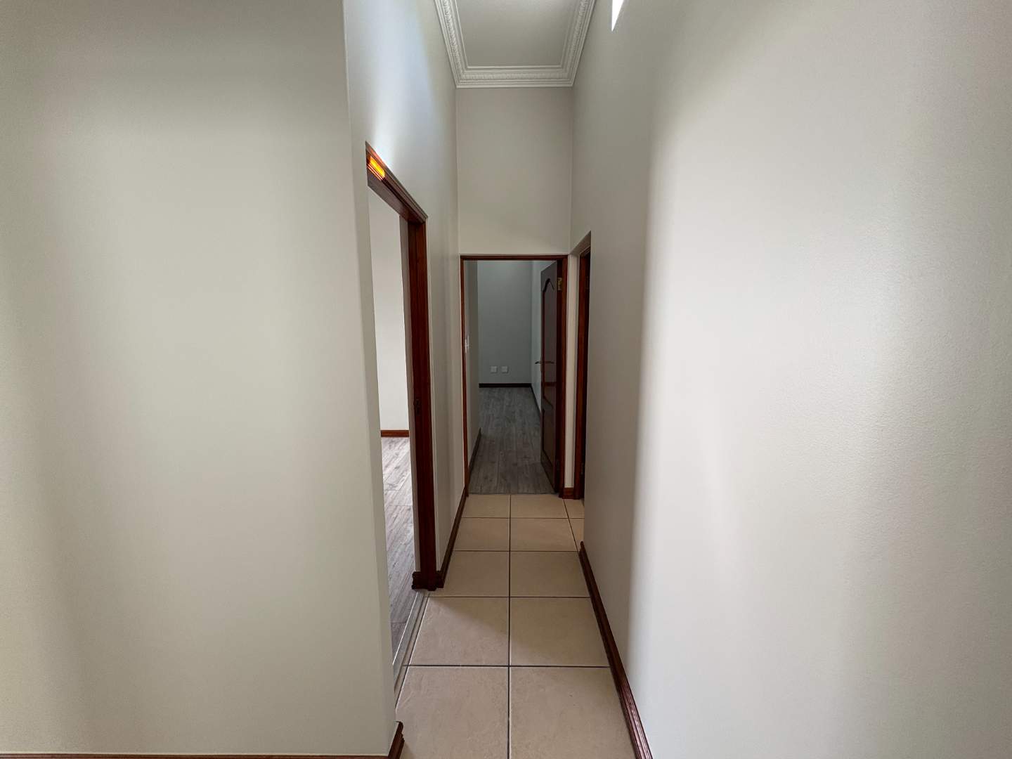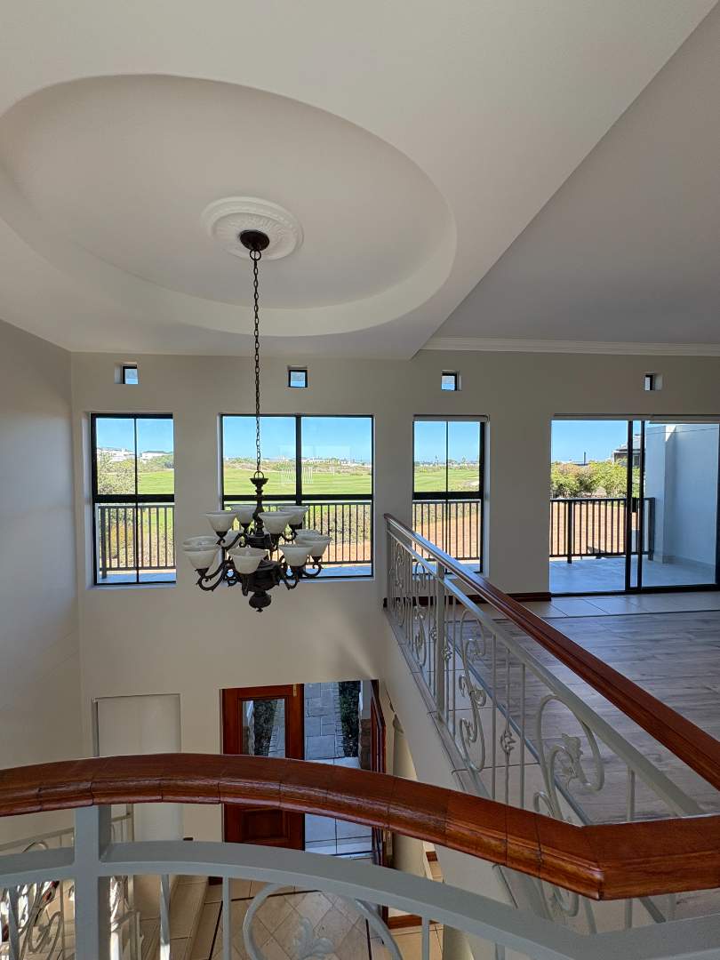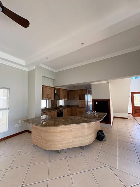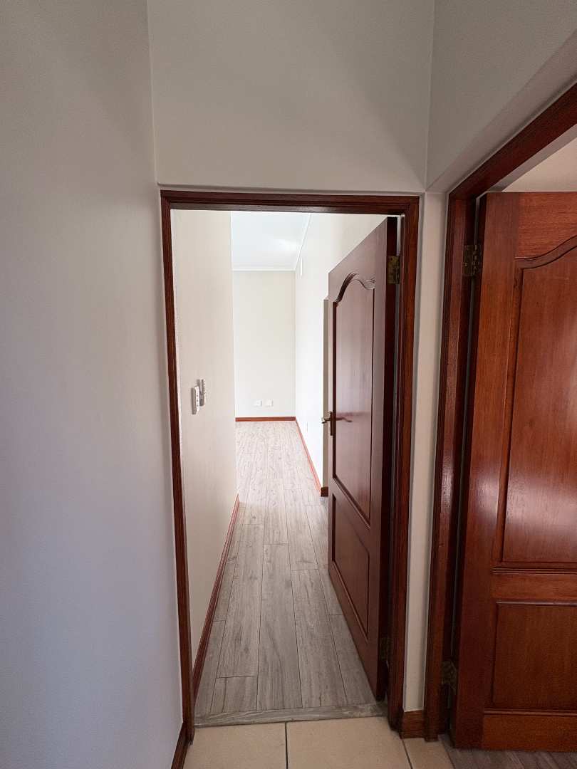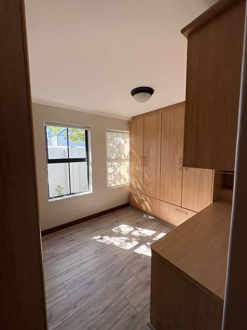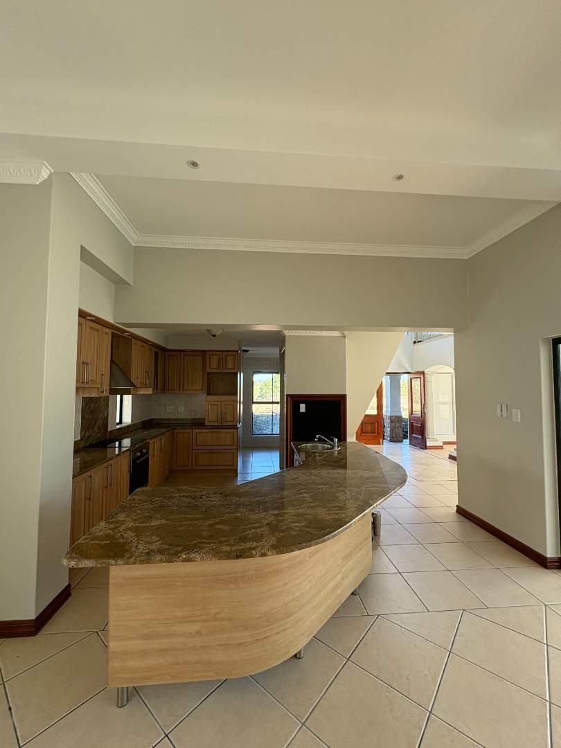 The ground floor offers three spacious bedrooms and two modern bathrooms, including a main suite with direct access to the lush back garden and pool area. For those who work from home, there is a dedicated office space with ample built-in cupboards. The heart of the home is the open plan lounge, dining, and kitchen area, which includes a separate scullery for added convenience. Additionally, the property features a double automated garage with space for two extra cars.