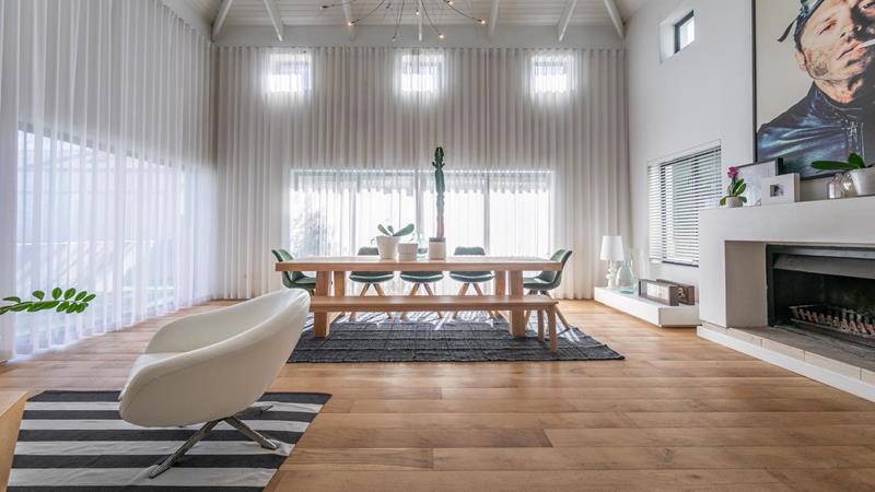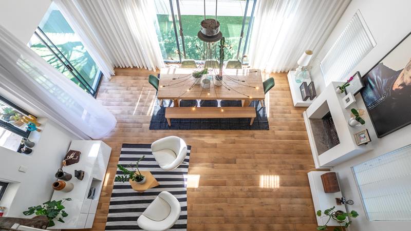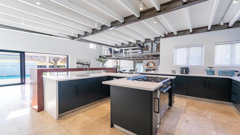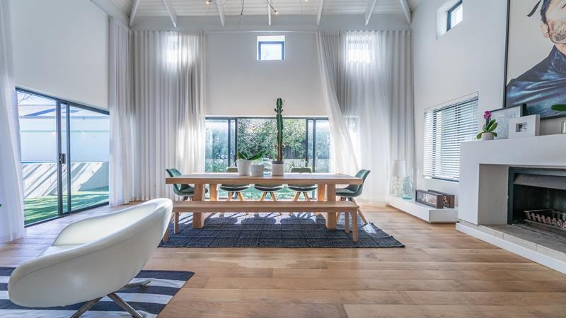 Boasting a versatile layout, this home can easily accommodate four bedrooms or be configured as a three-bedroom house with a granny flat. The current design offers ample space for a work from home environment, along with dedicated guest areas for entertaining throughout the seasons. The extra-high vaulted ceilings, exposed rafters, and unique mezzanines infuse the property with character and charm.