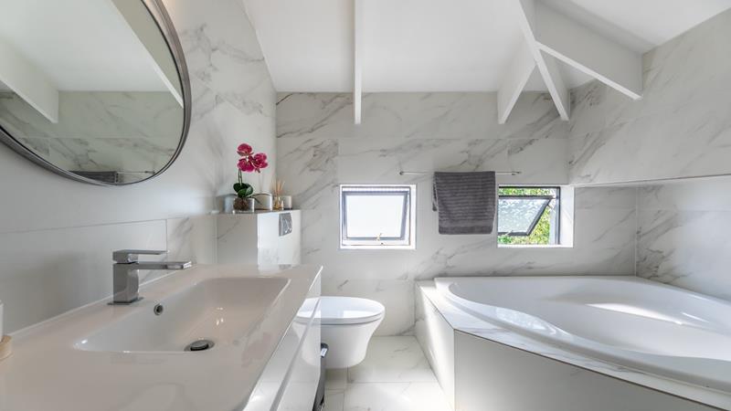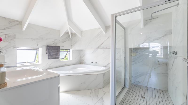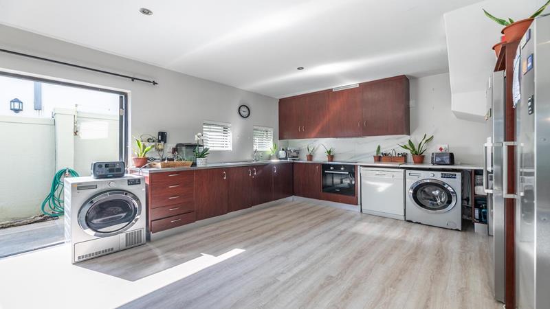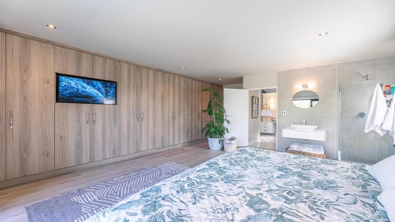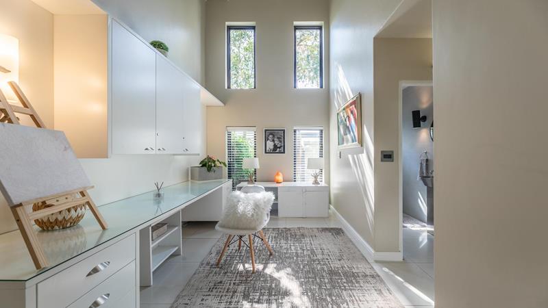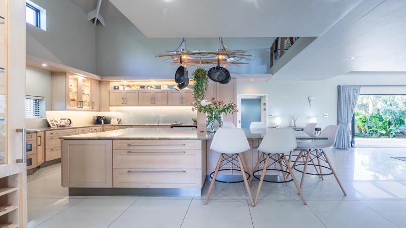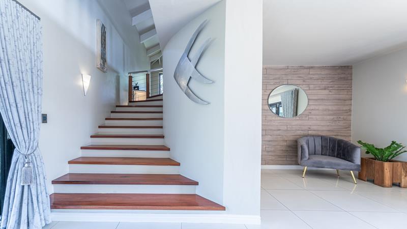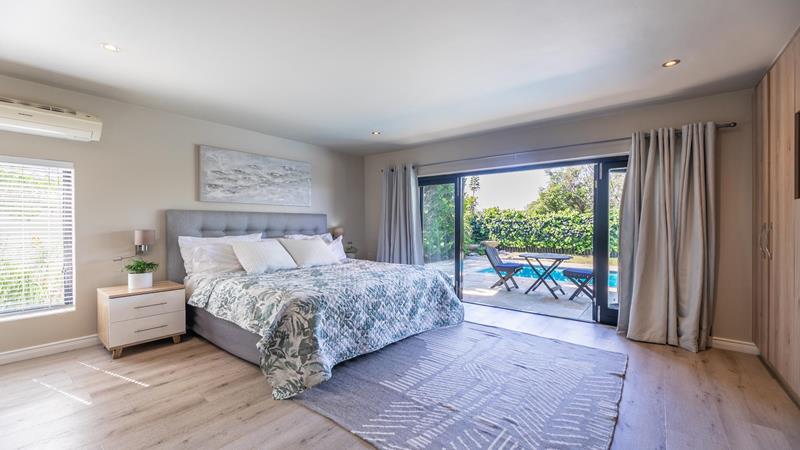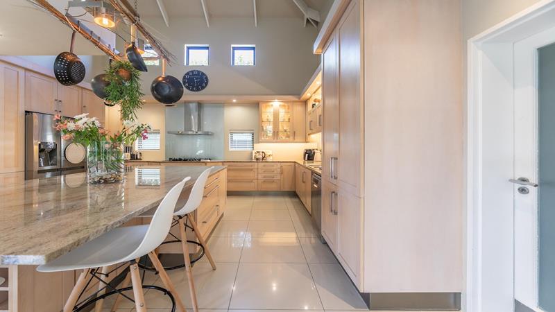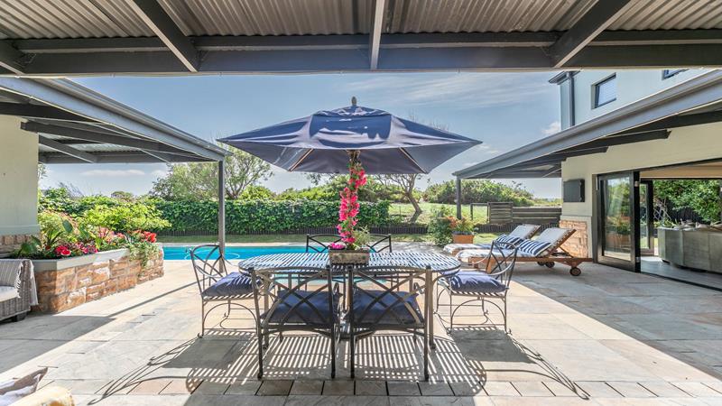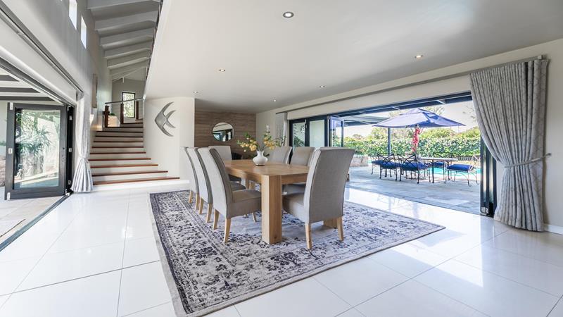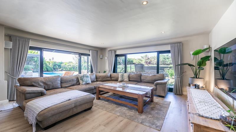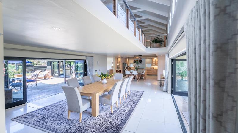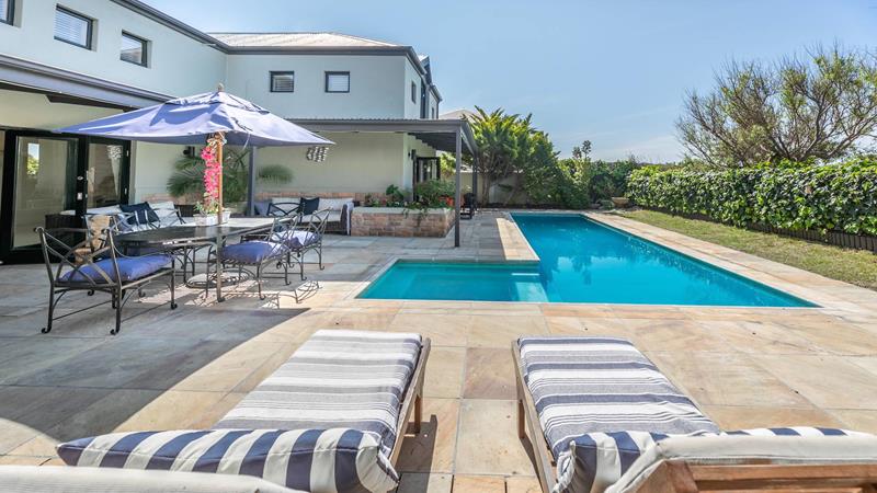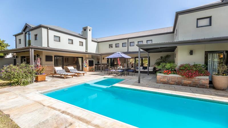 Brilliant design and layout means that the living areas, dining and kitchen flow effortlessly to the covered braai area and swimming pool. The pool is family size and excellent condition, even boasting boasting cocktail seating.