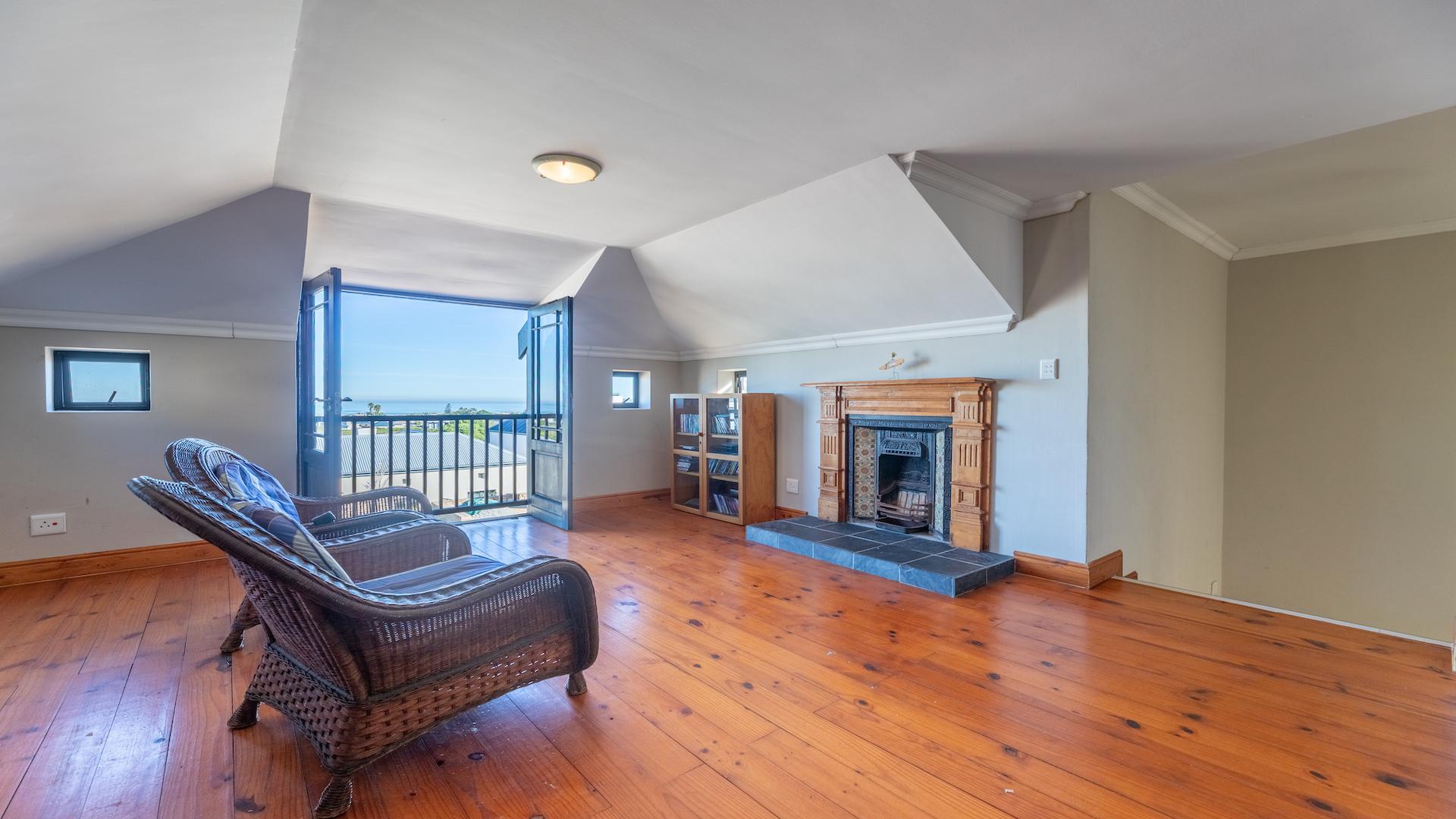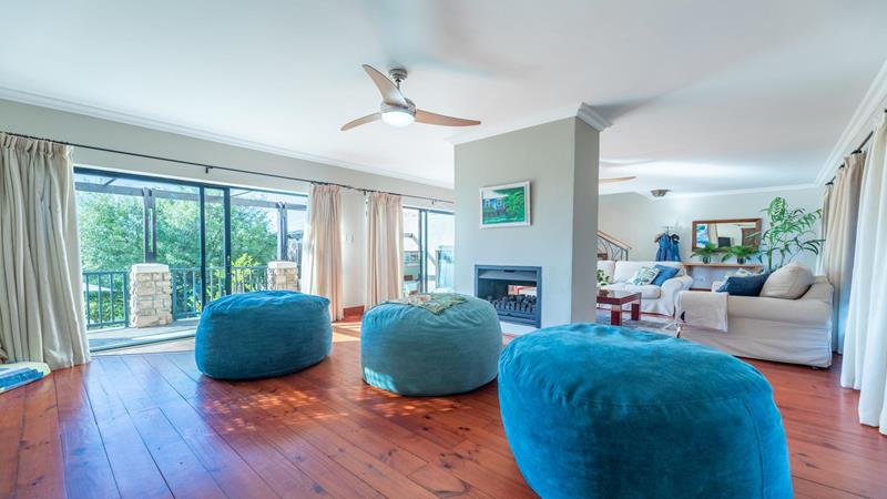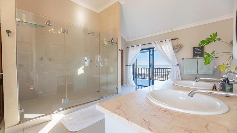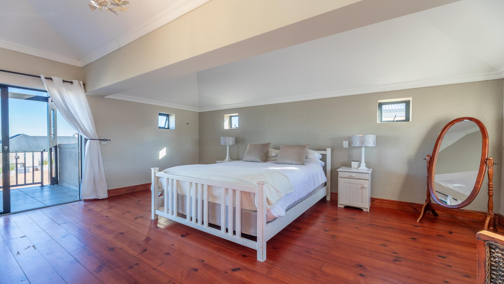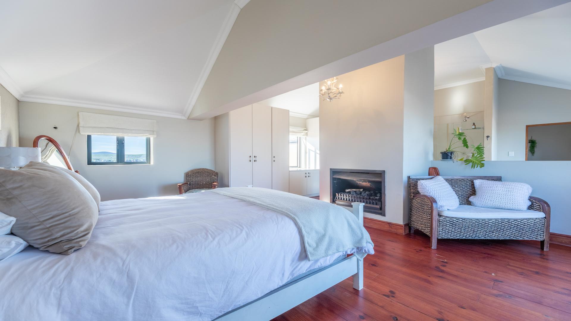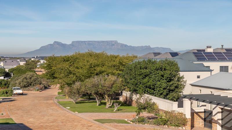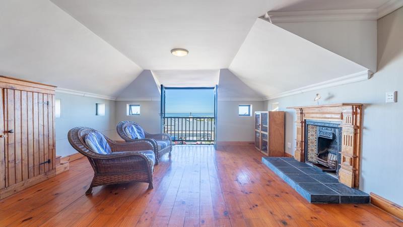 The upper lounge offers a peaceful sanctuary from which to soak in the ocean view. The main bedroom and ensuite is light and spacious with a large balcony. Views across the estate to East side and Table Mountain, Robben Island, and sea views to the West.