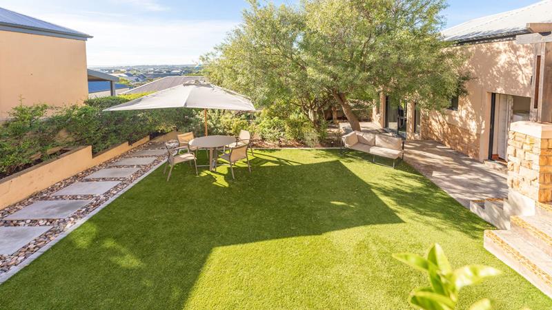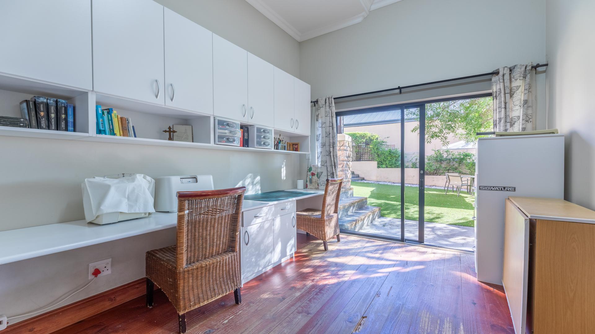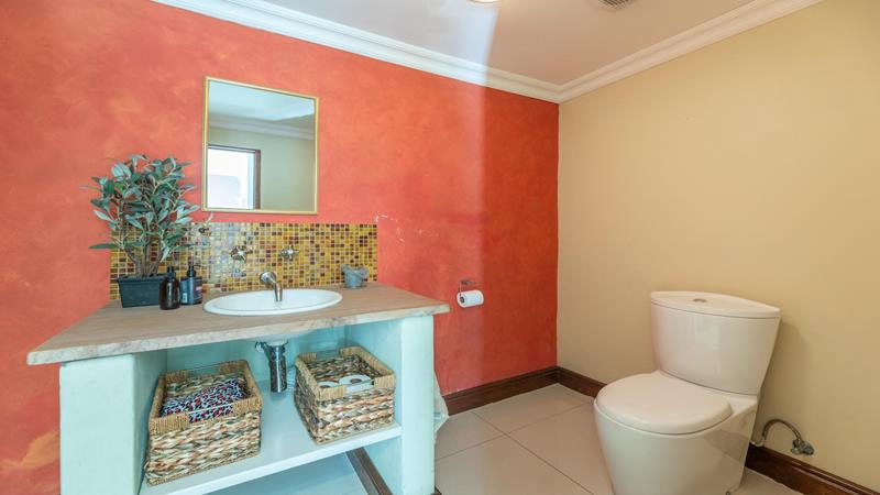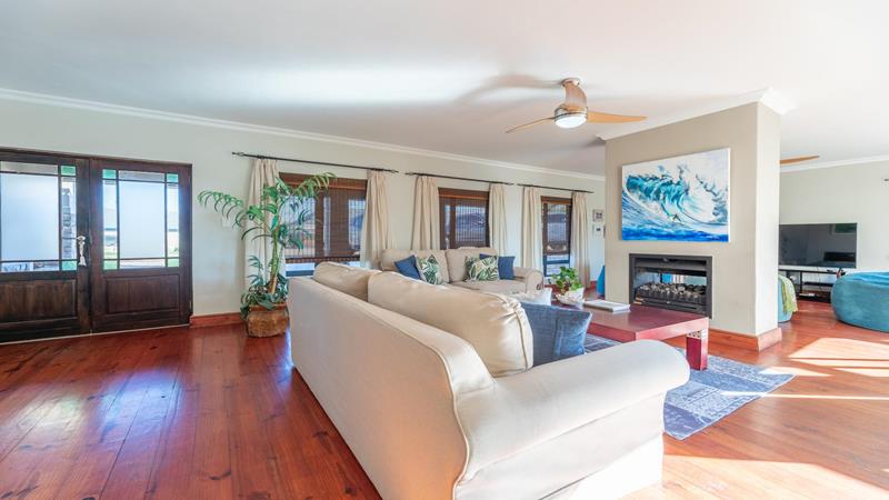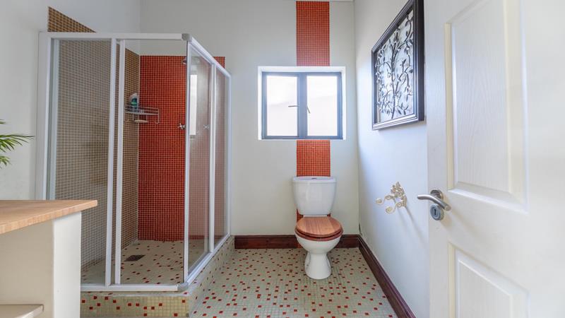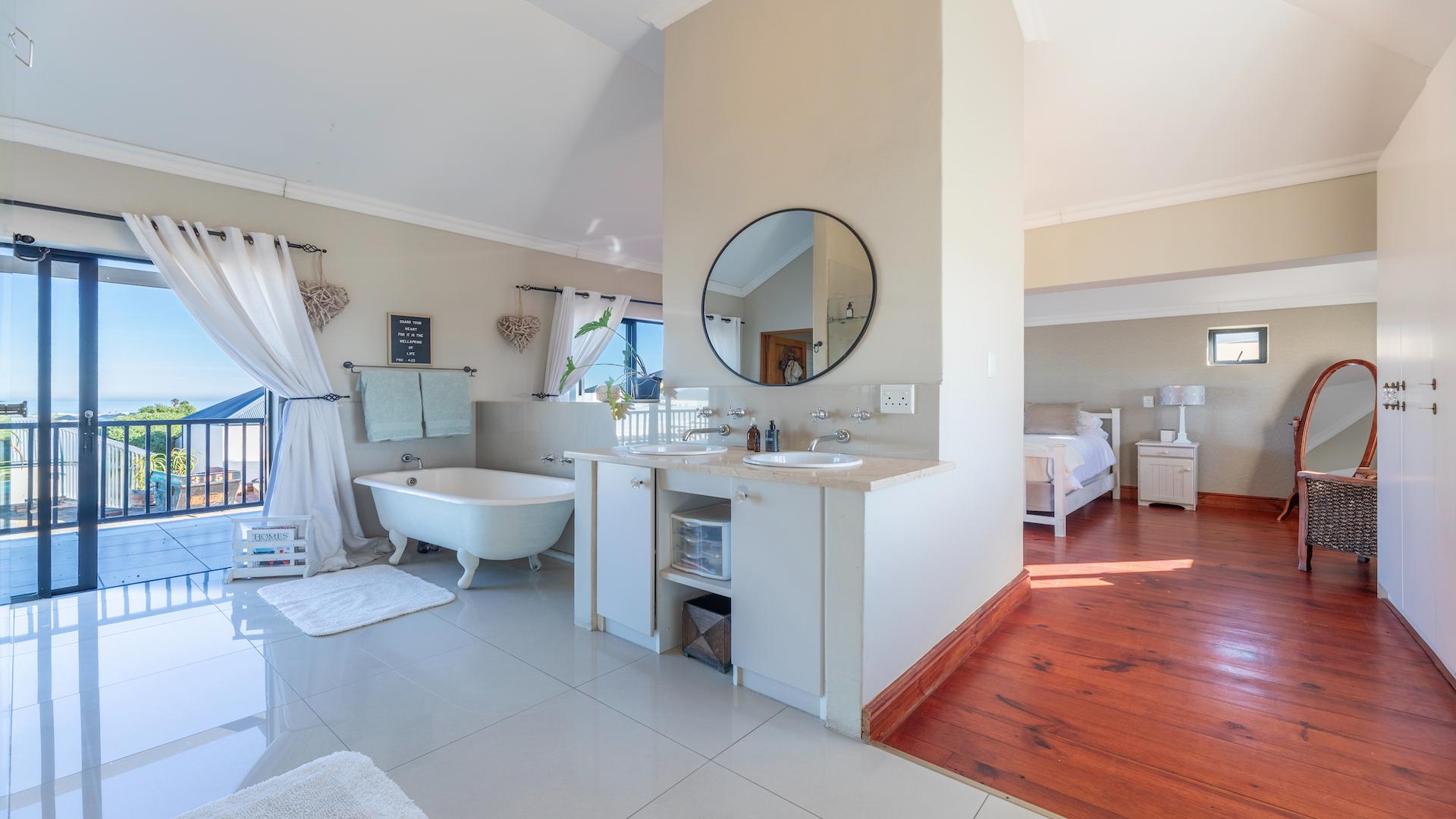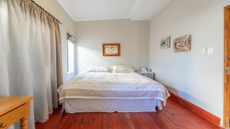 The upper lounge offers a peaceful sanctuary from which to soak in the ocean view. The main bedroom and ensuite is light and spacious with a large balcony. Views across the estate to East side and Table Mountain, Robben Island, and sea views to the West.