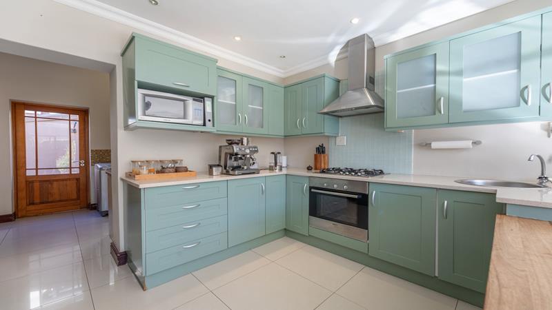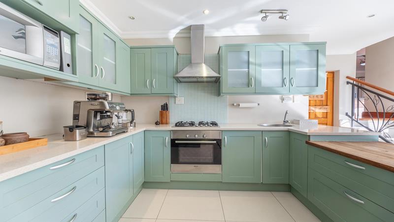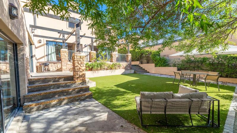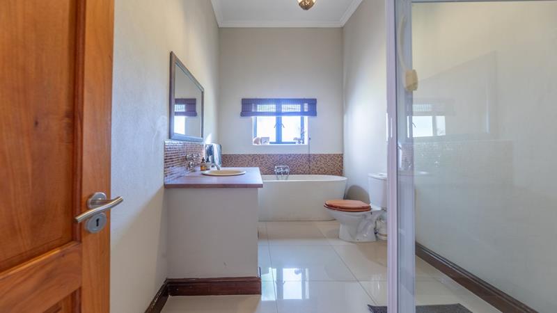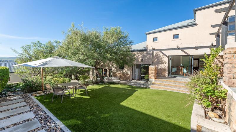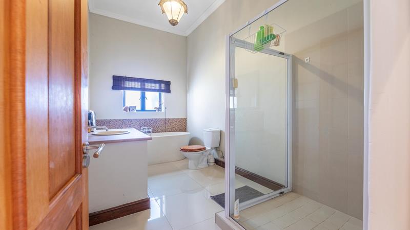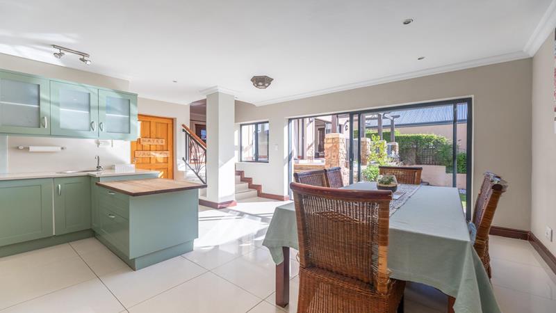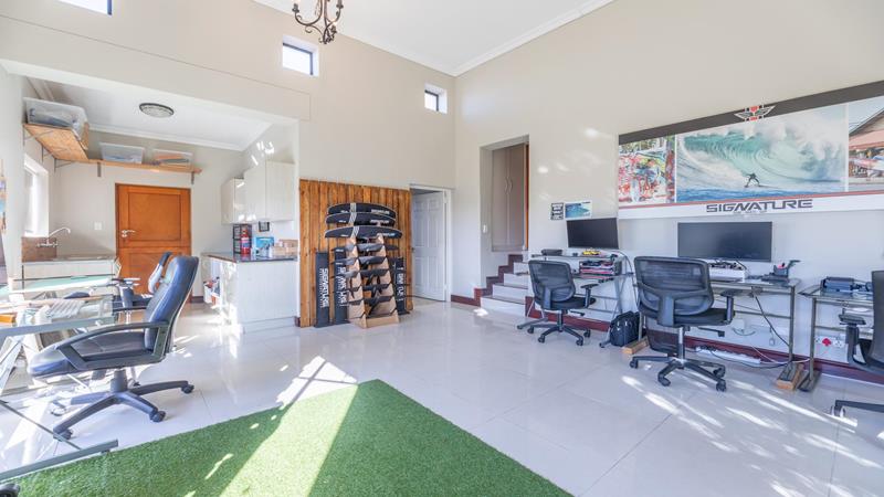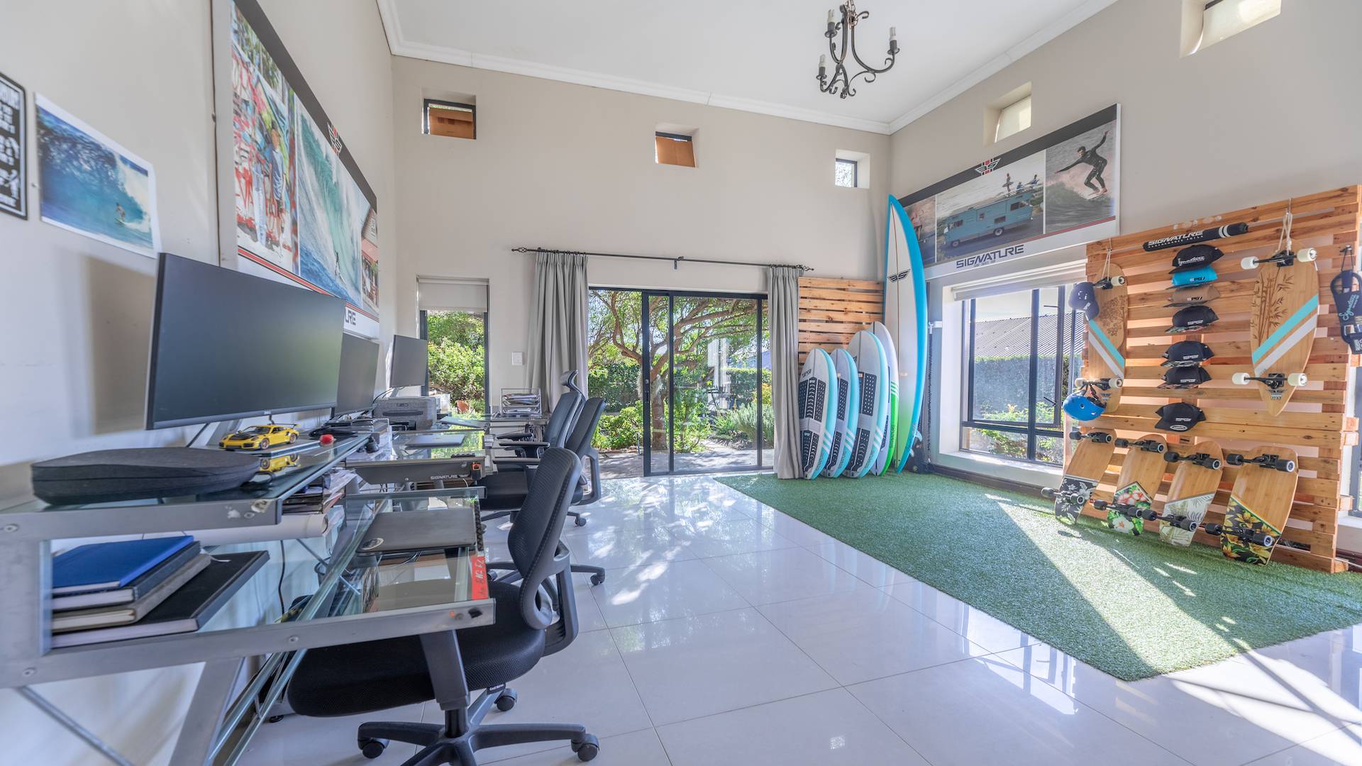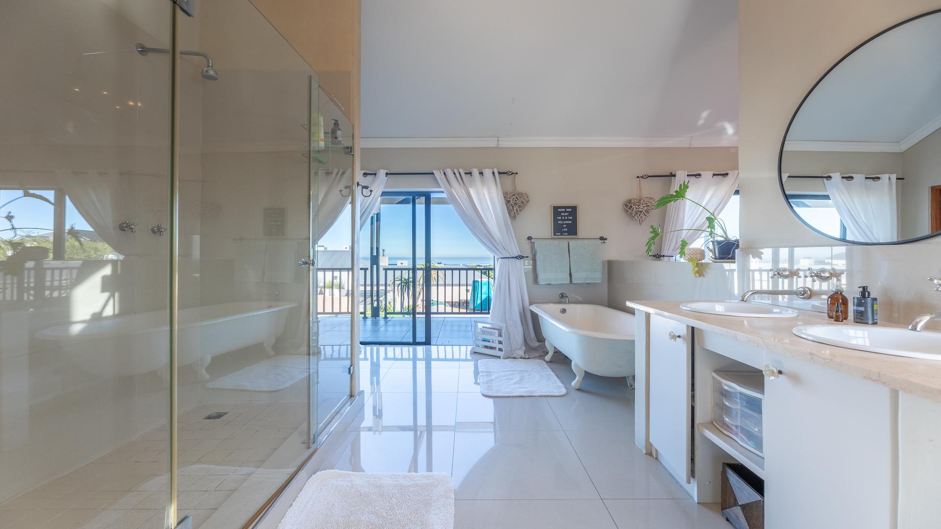 The upper lounge offers a peaceful sanctuary from which to soak in the ocean view. The main bedroom and ensuite is light and spacious with a large balcony. Views across the estate to East side and Table Mountain, Robben Island, and sea views to the West.