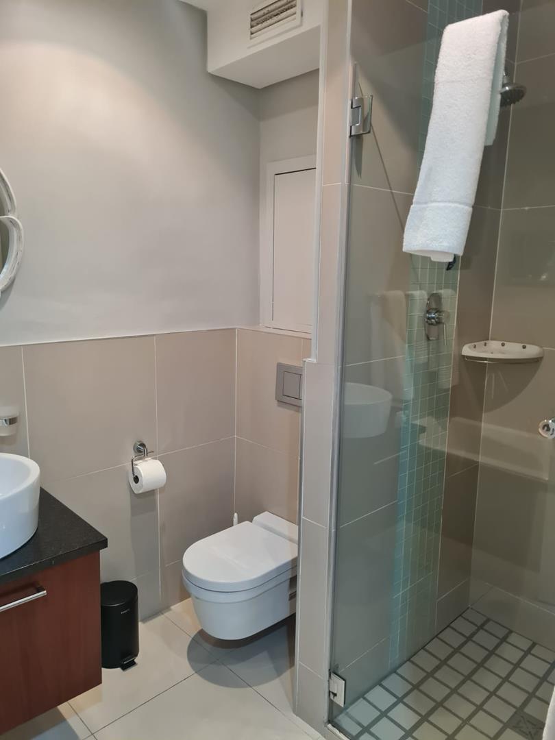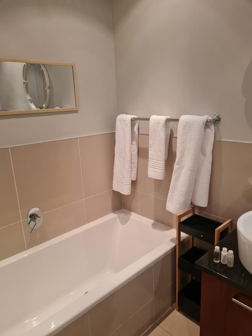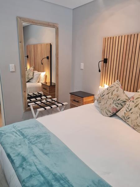 The well-sized bedroom features built-in cupboards and a full en-suite bathroom.