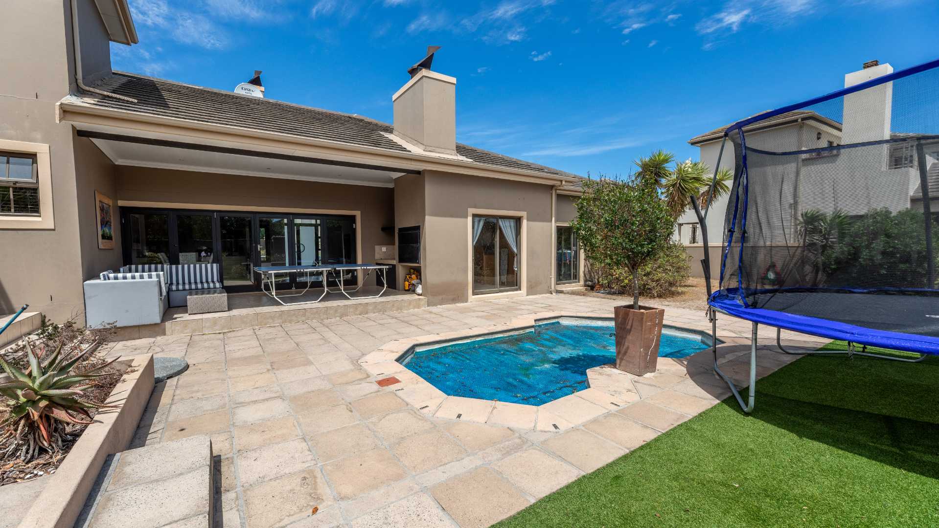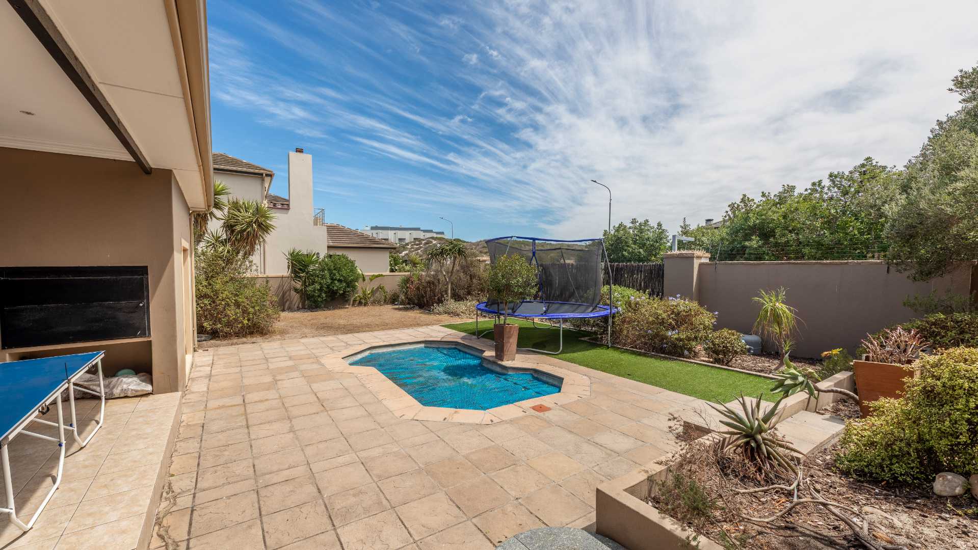 Set on a generously sized, north-facing plot, this home is bathed in natural light and designed for effortless indoor-outdoor living. The spacious open-plan living and dining areas flow seamlessly onto a covered entertainment patio and private swimming pool—perfect for unwinding on relaxed summer evenings after a day at the beach.