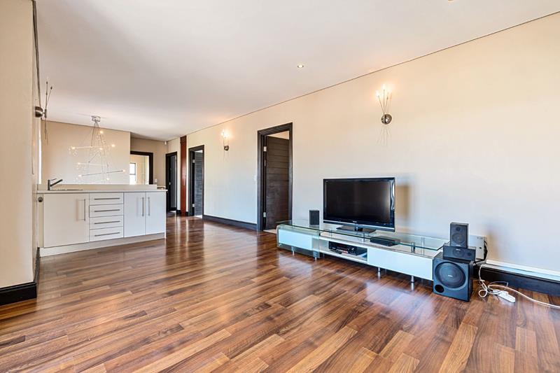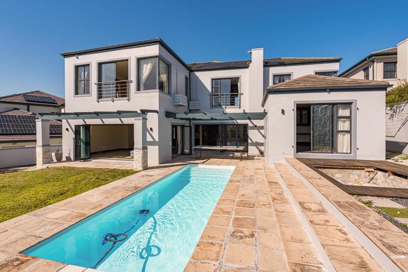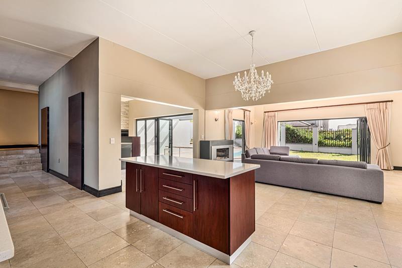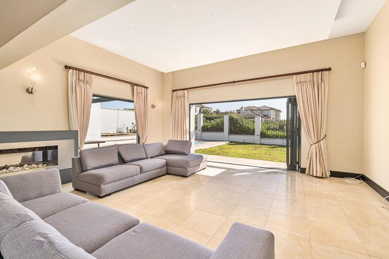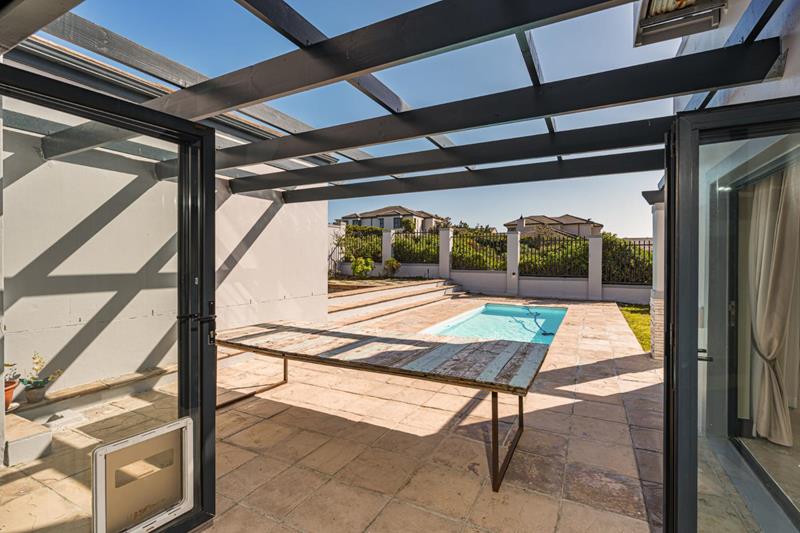 - The open-plan lounge seamlessly flows to the patio, garden, and pool through stacker