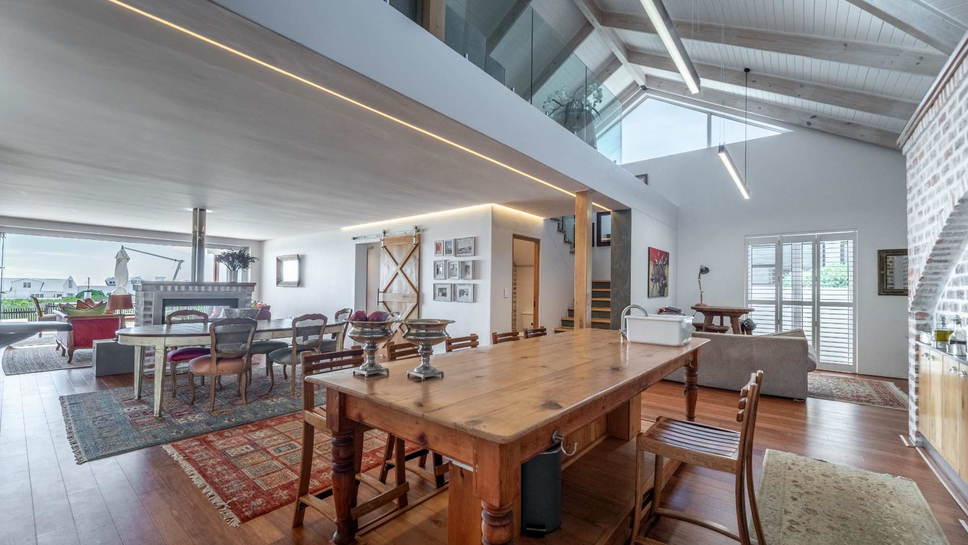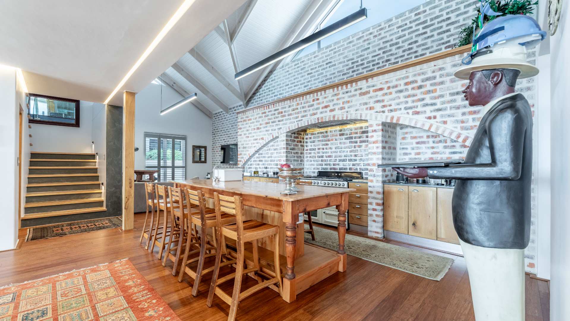This double volume kitchen, is a chef’s dream, featuring a premium 7-hob Smeg stove, along with a concealed pantry and separate scullery to keep the main living areas beautifully uncluttered.