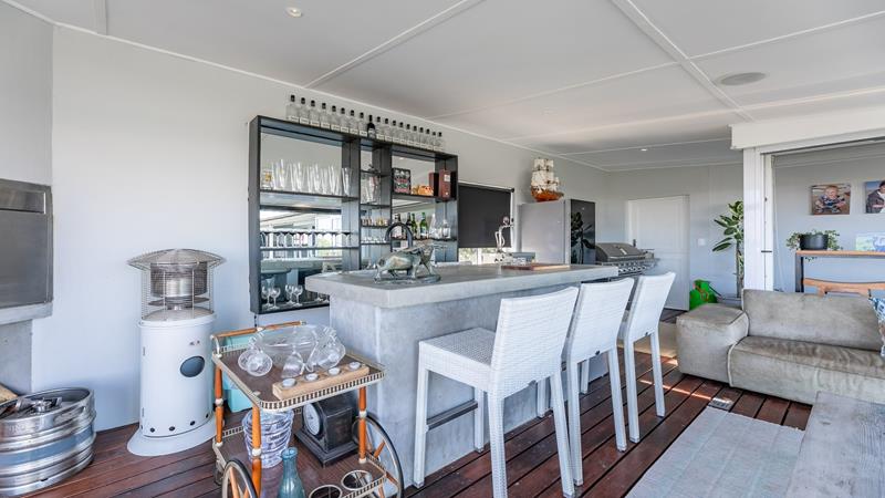 The open plan lounge, dining room, and kitchen area are perfect for entertaining and lead out onto a beautiful wind-shielded patio and bar area.