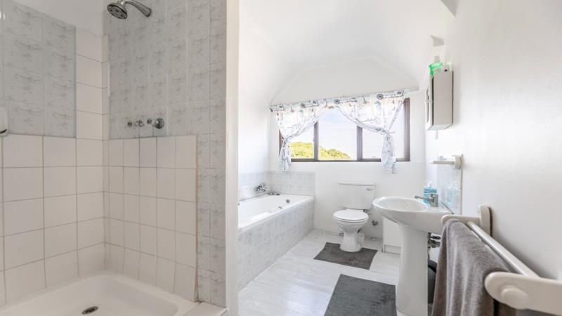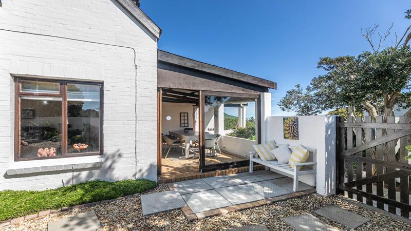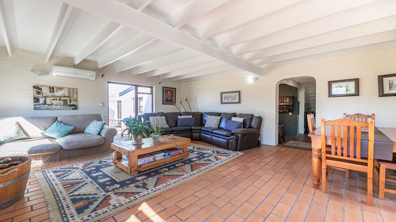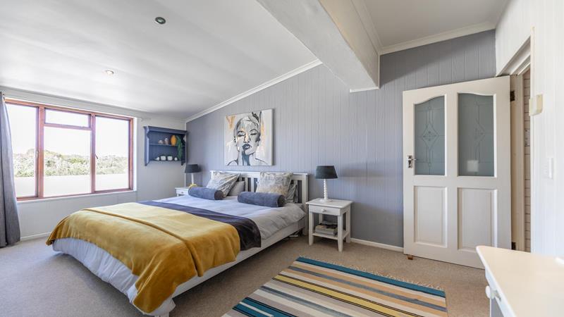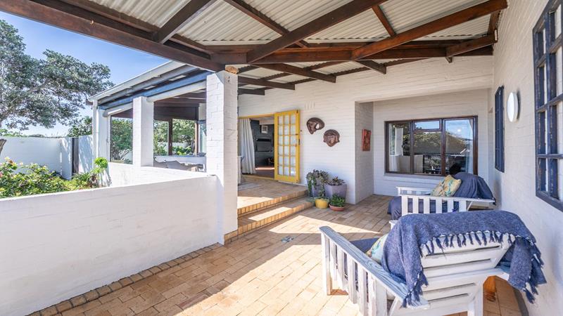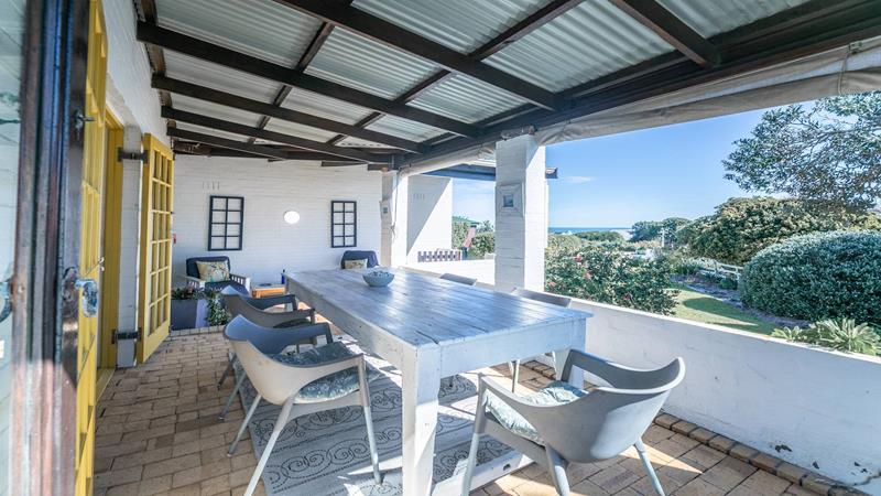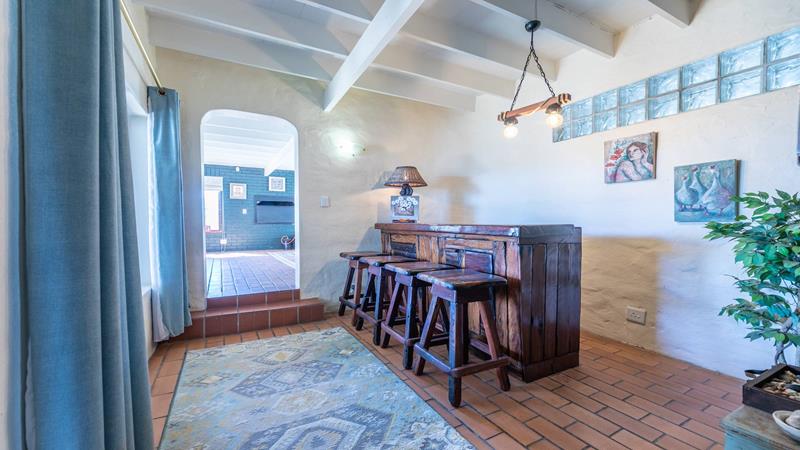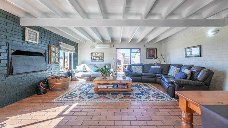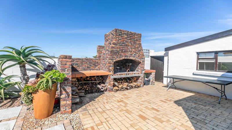 Enjoy sea views from the patio and upstairs bedrooms. The bedrooms are generously sized, one downstairs and three upstairs, each featuring built-in cupboards and ensuite bathrooms. The living area is designed for both relaxation and entertainment, featuring a built-in braai to keep you cozy on colder evenings and an outdoor braai area for those sunny days. The air-conditioned lounge seamlessly connects to the dining room and bar area, creating a harmonious flow throughout the main living spaces.