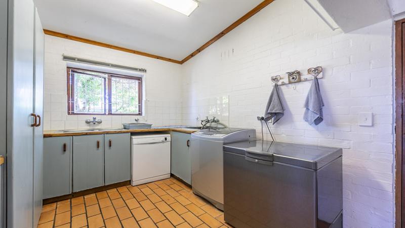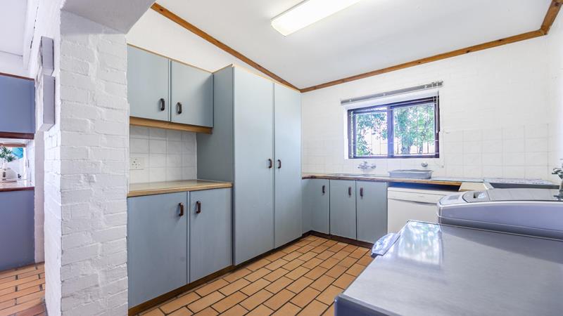 The spacious kitchen boasts ample storage with built-in cupboards and a pantry / scullery, further complemented by a separate drying yard and wash basin.