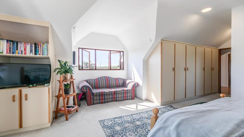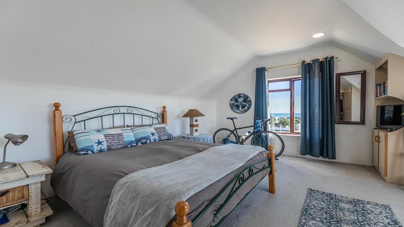 Entertain with ease in the indoor bar or the outdoor braai area, which opens onto a large patio with stunning sea views, perfect for hosting gatherings in a comfortable beach-style setting. The home features terracotta tiles on the ground floor and cozy carpets in the bedrooms upstairs.