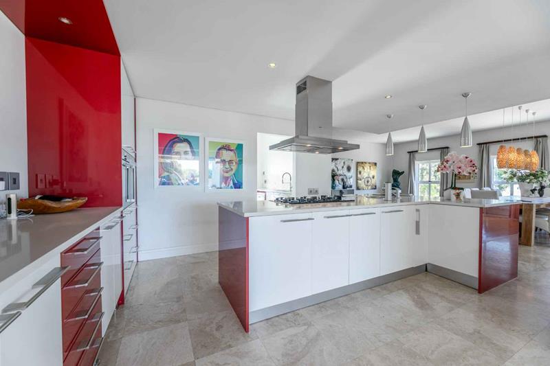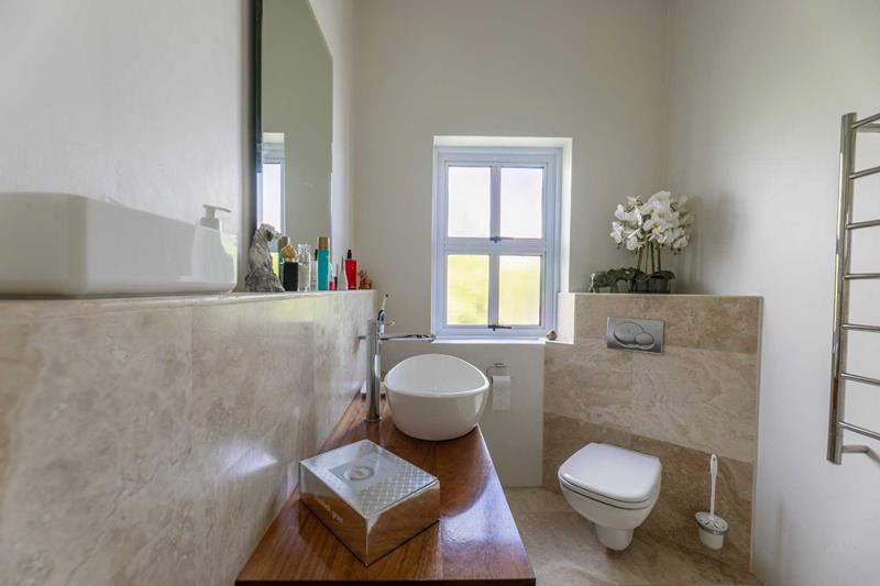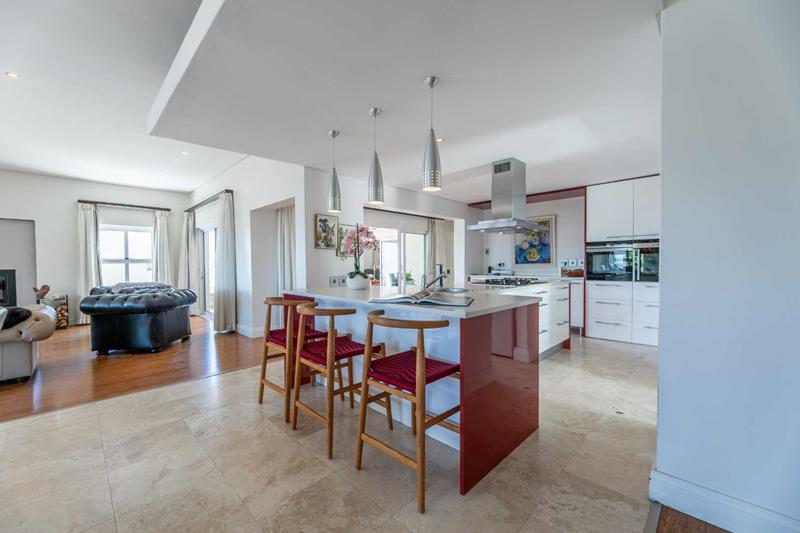 The kitchen is a chef's delight, equipped with a gas hob, double eye-level oven, and a breakfast bar. The craftsmanship of Morris van der Watt is evident in the cabinetry of the kitchen and entrance hall, where traditional artisan woodwork meets modern technology, resulting in both classical design and practical functionality.