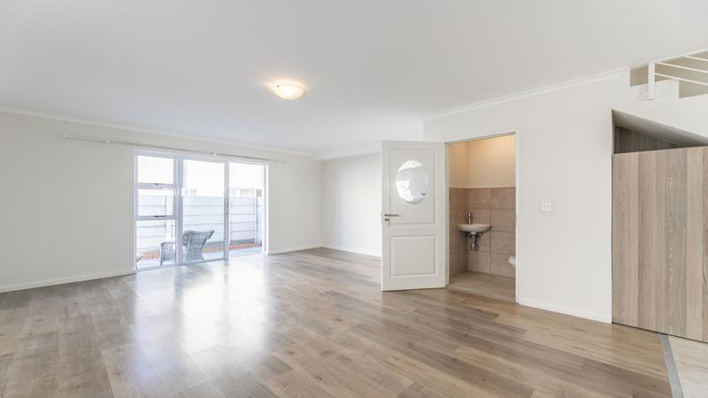 This modern secure complex, acquired off-plan by the current owner in 2019, boasts an inviting layout featuring open-plan living, dining, and kitchen areas seamlessly connected to a cozy patio and low maintenance- garden. Ample storage space is conveniently tucked beneath the stairs for linens and kitchen essentials. Additionally, the property is equipped with fiber-optic internet connectivity and operates on a prepaid electricity system.