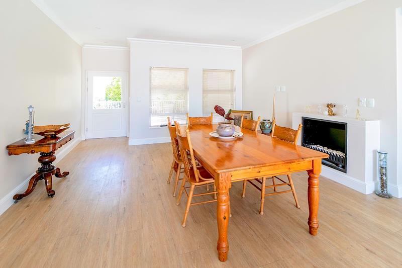 The modern open plan kitchen with ample cupboard space, breakfast nook, undercounter water filter to sink, gas stove and an eye level oven flows to the spacious lounge, dining and living area which has a large gas fireplace for the cooler days and a ceiling fan for the warmer days . This area has stack doors which opens up to the well sized and manicured fully fenced garden area. The spacious main bedroom has plenty cupboard space and an ensuite bathroom with a shower. The second bedroom has BIC and there is a guest loo. This beautiful, fibre ready home comes with, blinds, vinyl flooring throughout an invertor system and a courtyard with a washing line and a sink. There is a single automated garage with a laundry area, direct access to the house and extra space for parking.