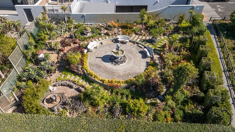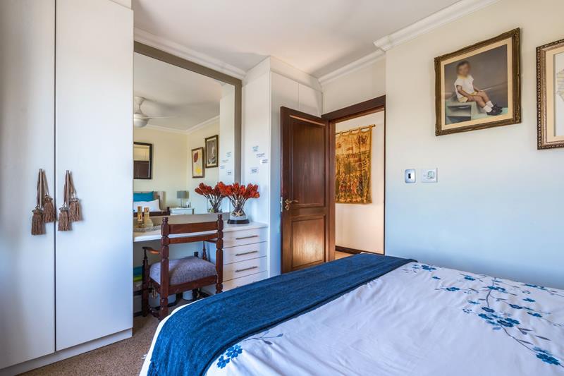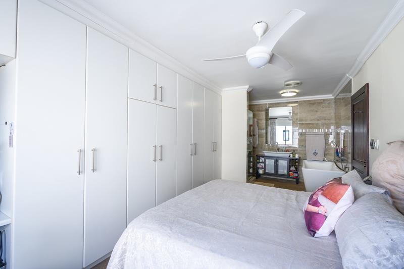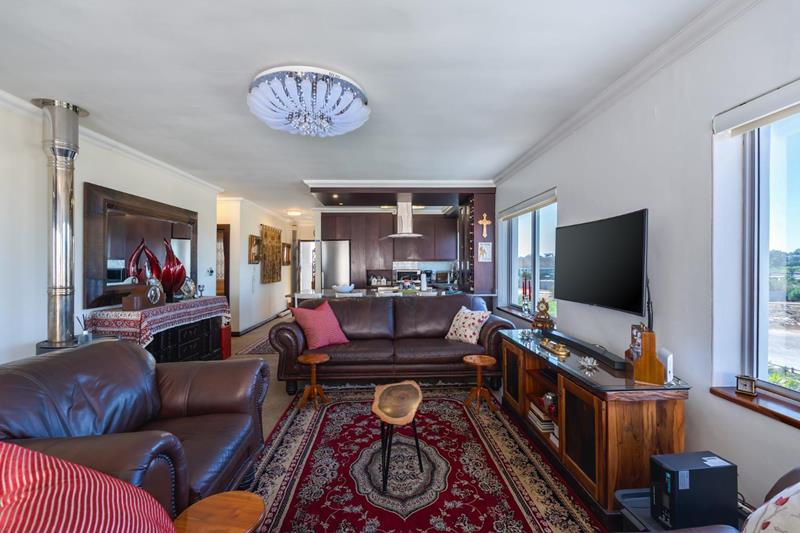 The open-plan living and dining area is light-filled and inviting, flowing to large windows that frame the spectacular outlook. From the lounge, you also enjoy views over a private garden below, complete with a braai area and built-in benches—ideal for relaxed outdoor entertaining or quiet moments outdoors. Quartz flooring throughout.