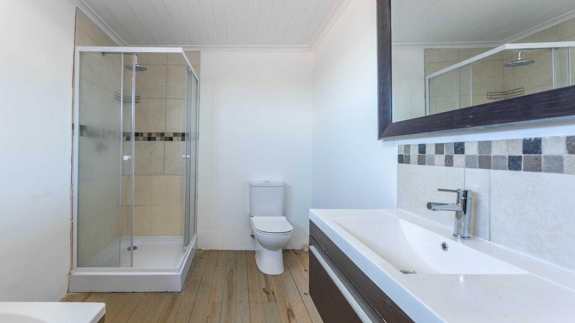 The second floor offers two north-facing bedrooms. The first features an ensuite bathroom and opens onto a large balcony with partial sea views, complemented by ample floor-to-ceiling cupboard space. The second bedroom also has ample floor to ceiling cupboard space, and has a more rustic theme with wooden flooring.