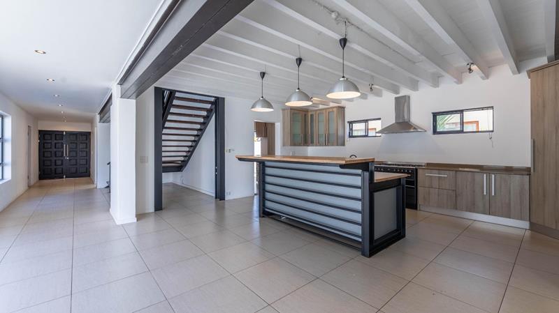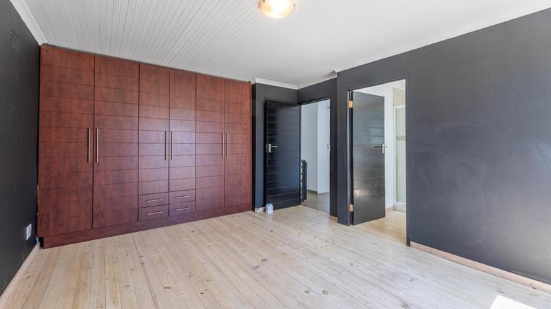 Upon entering, you'll be greeted by a sun-drenched bedroom with an ensuite bathroom, perfectly positioned to capture natural light throughout the day. The heart of the home is a sleek, open-plan kitchen in striking black and silver tones, complete with a separate scullery. This culinary space seamlessly connects to a generous living area and an indoor braai room, which flows effortlessly into a secluded courtyard, offering an ideal setting for entertaining.