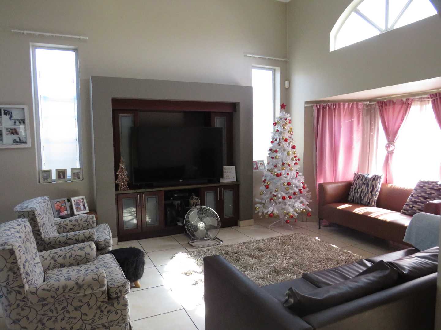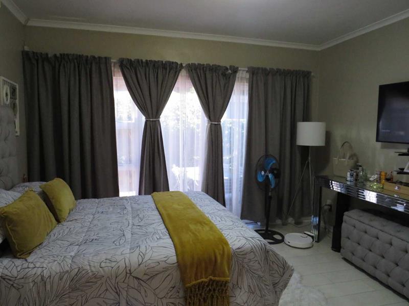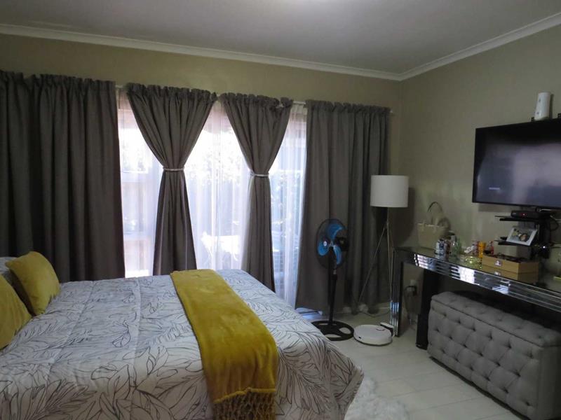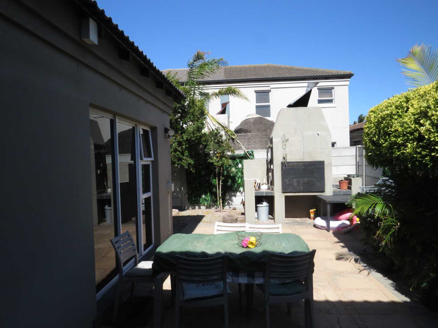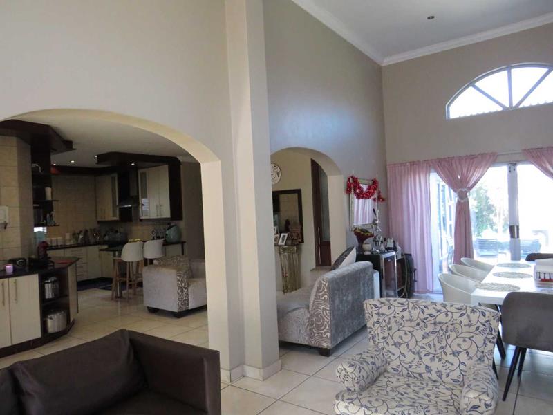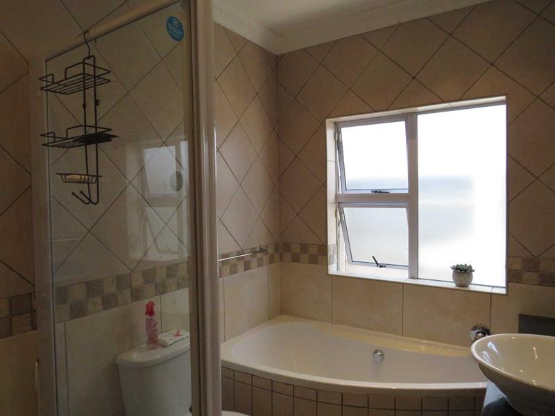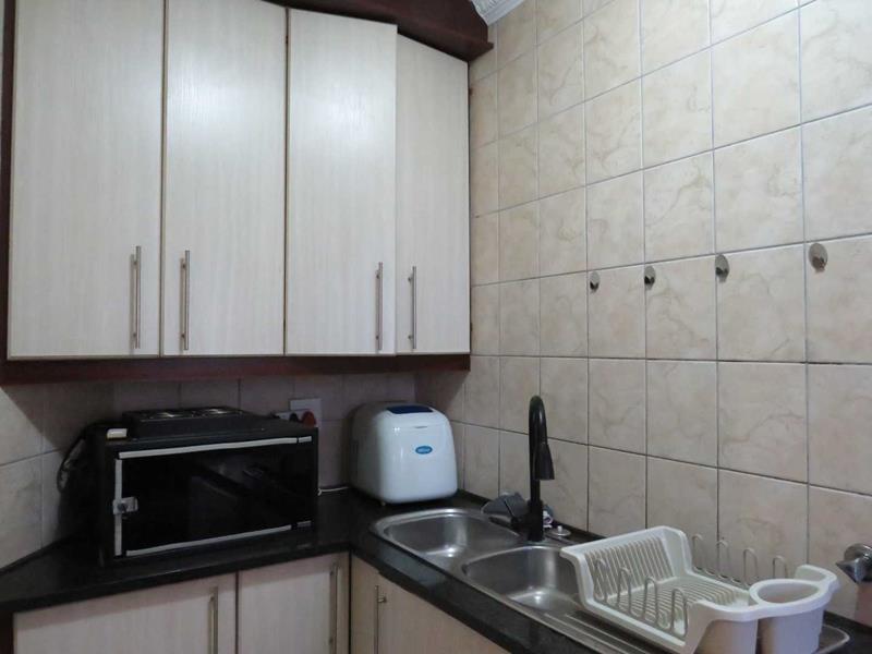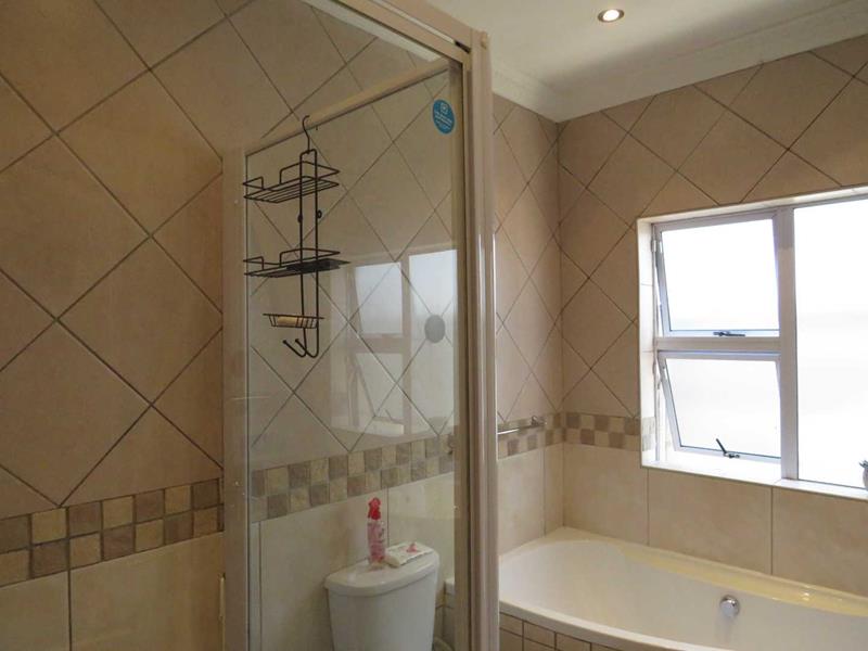 This flows to the spacious lounge and dining areas with a built in TV cabinet which opens to the outside patio with a built in braai and small garden area.