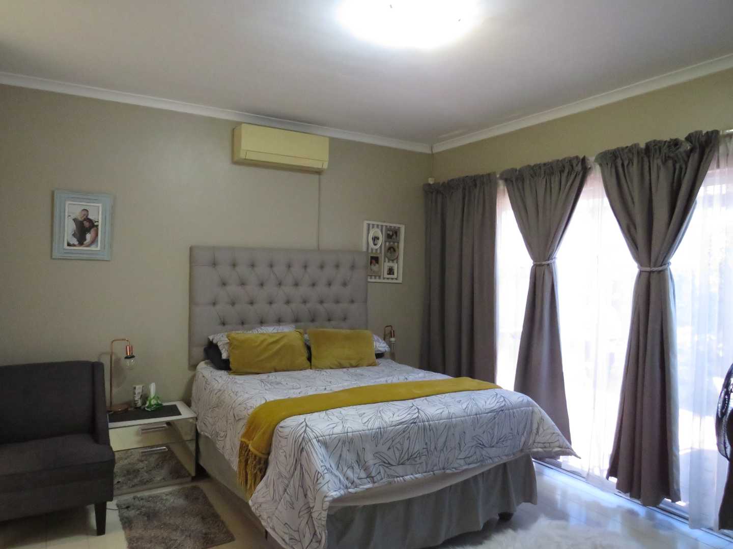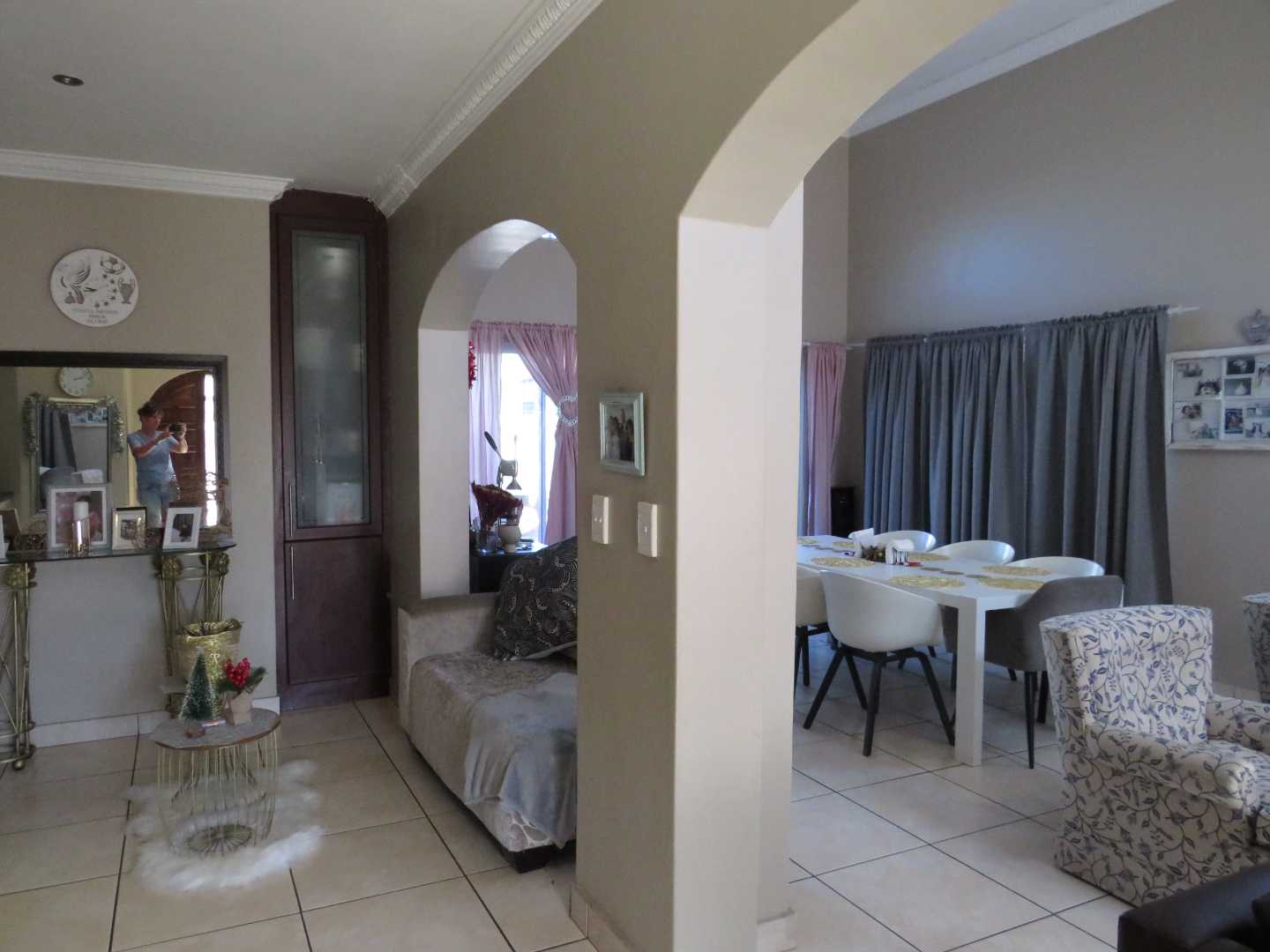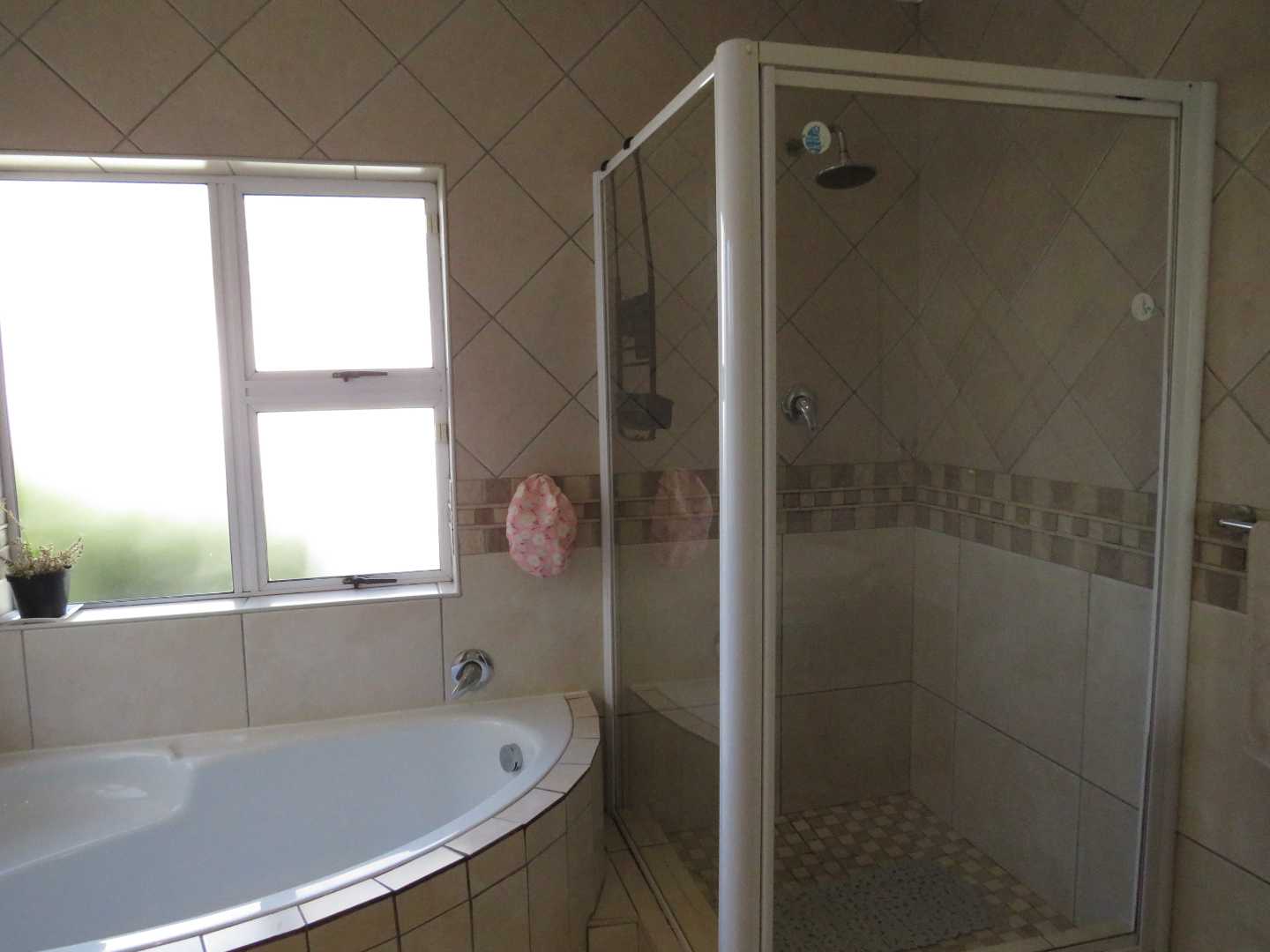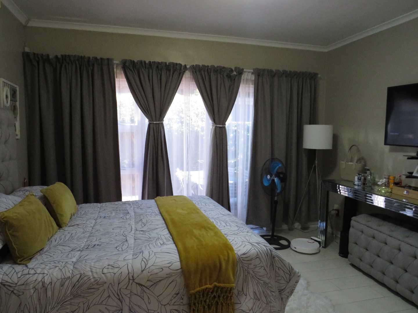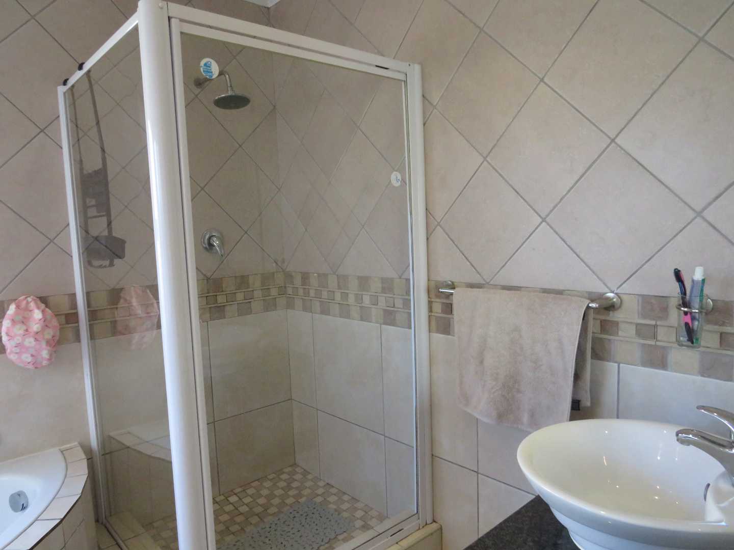 This flows to the spacious lounge and dining areas with a built in TV cabinet which opens to the outside patio with a built in braai and small garden area.