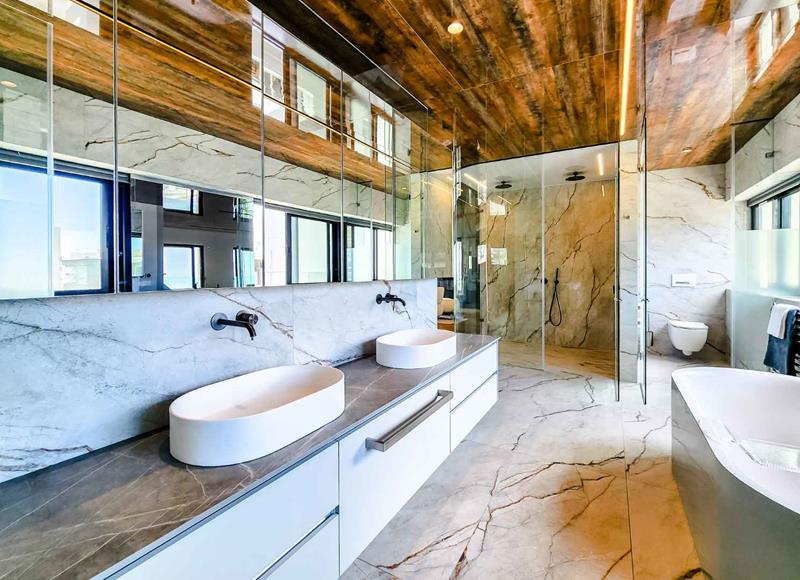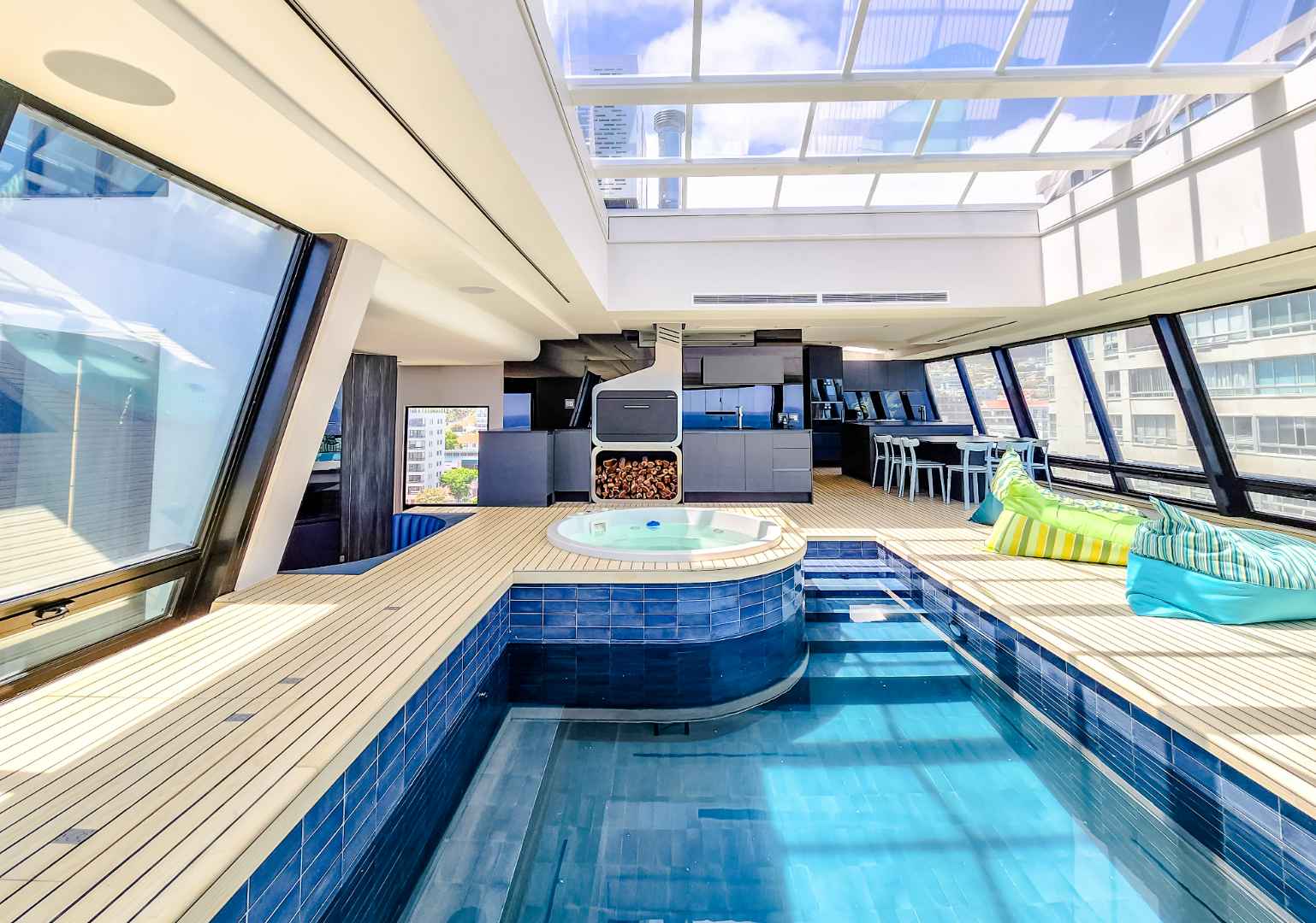 Ascend the sweeping staircase to the upper deck, where a private pool and Jacuzzi invite you to drop anchor and unwind. The deck and sun lounge are enjoyed with the retractable roof, open or closed, offering relaxation in all weather conditions.