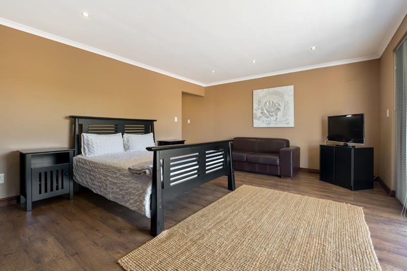 For security, the property is equipped with external security beams and internal passive infrared detectors, complemented by 24-hour surveillance via street cameras. An 8.5kW inverter (solar ready) paired with a 5kW battery ensures backup power during loadshedding.